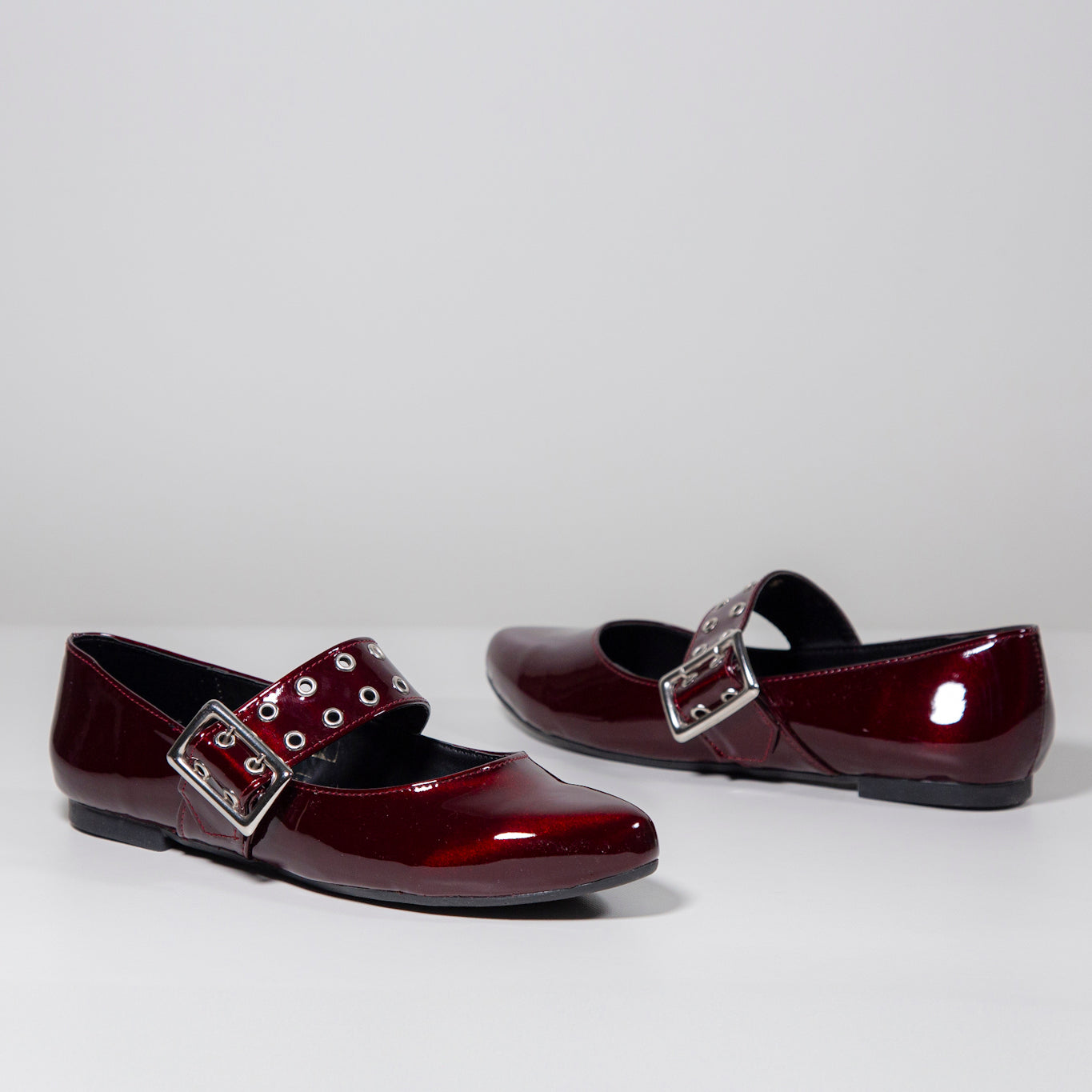 Balerina para dama marca Zócalo en colores Merlot y negro Diseño moderno y cómodo, cuenta con acabado en charol y una suela ligera, este modelo te permite la comodidad que necesitas en un calzado.