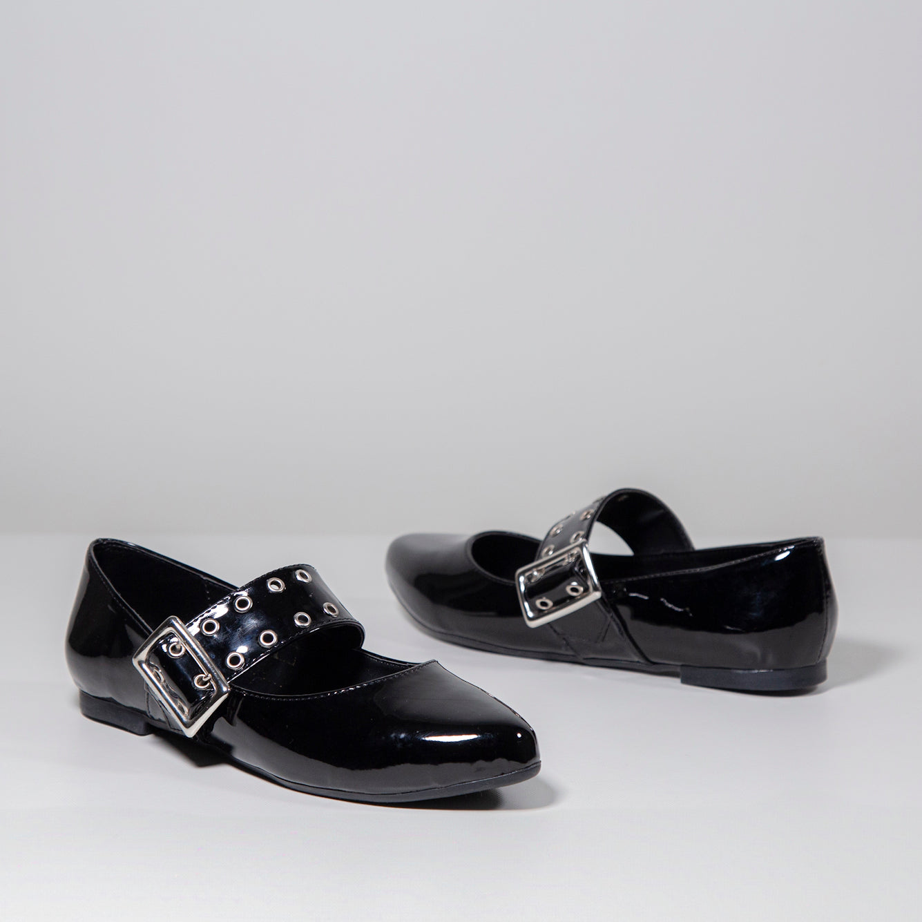 Ligereza y confort para acompañarte con elegancia en cada paso. Balerina con acabado en charol y diseño moderno, pensada para brindar comodidad sin renunciar al estilo.