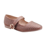Calzado para dama marca Ivi Love en color maquillaje. Este hermoso modelo casual cuenta con un ajuste cómodo gracias a su hebilla y está adornado con pedrería artificial. Además, su tacón bajo lo hace perfecto para usar durante todo el día. ¡Conviértete en el centro de atención con este elegante zapato!