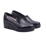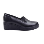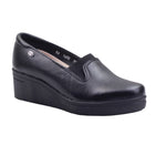 Calzado para dama marca Barcassi en colores negro. Este modelo de plataforma cuenta con una altura de 5.3 cm y su diseño de punta redonda, junto con el corte con elástico para facilitar el ingreso del pie, hacen que sea un modelo cómodo y conveniente. Además, su acabado en piel vacuna le da un toque elegante.