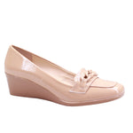 Calzado para dama marca Clinton en color maquillaje. Este modelo cuenta con un elegante eslabón de adorno que agrega un toque de sofisticación. La plataforma presenta una altura de 4.5 centímetros, lo que brinda comodidad y un aspecto más estilizado. Además, su plantilla de confort proporciona una sensación de suavidad y apoyo para tus pies.