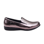 Calzado para dama con perforaciones en el corte y tono metalizado
