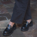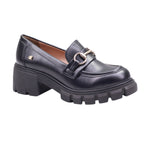 Plataforma para dama marca Salamandra en color negro. Originalidad y estilo para tu atuendo. Modelo super atractivo de suela ancha, consigue el look que te hará ver genial esta temporada. Se trata de un modelo atractivo a la vista con adorno de broche frontal. Además de fácil de combinar con tu guardarropa actual.