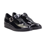 Calzado para dama marca Zócalo en color Negro charol. Diseño moderno y cómodo, cuenta con ajuste en hebilla y una suela ligera con altura de 2.5 cm, este modelo te permite la comodidad que necesitas en un calzado.