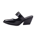 Calzado para dama marca Maquech en color negro. Este modelo destalonado de tacón con altura de 5.5 cm es la combinación perfecta de elegancia y comodidad. Su tira con hebilla y terminado en piel lisa le dan un toque sofisticado, ideal para cualquier ocasión. ¡Disfruta del estilo y la comodidad con este modelo único!
