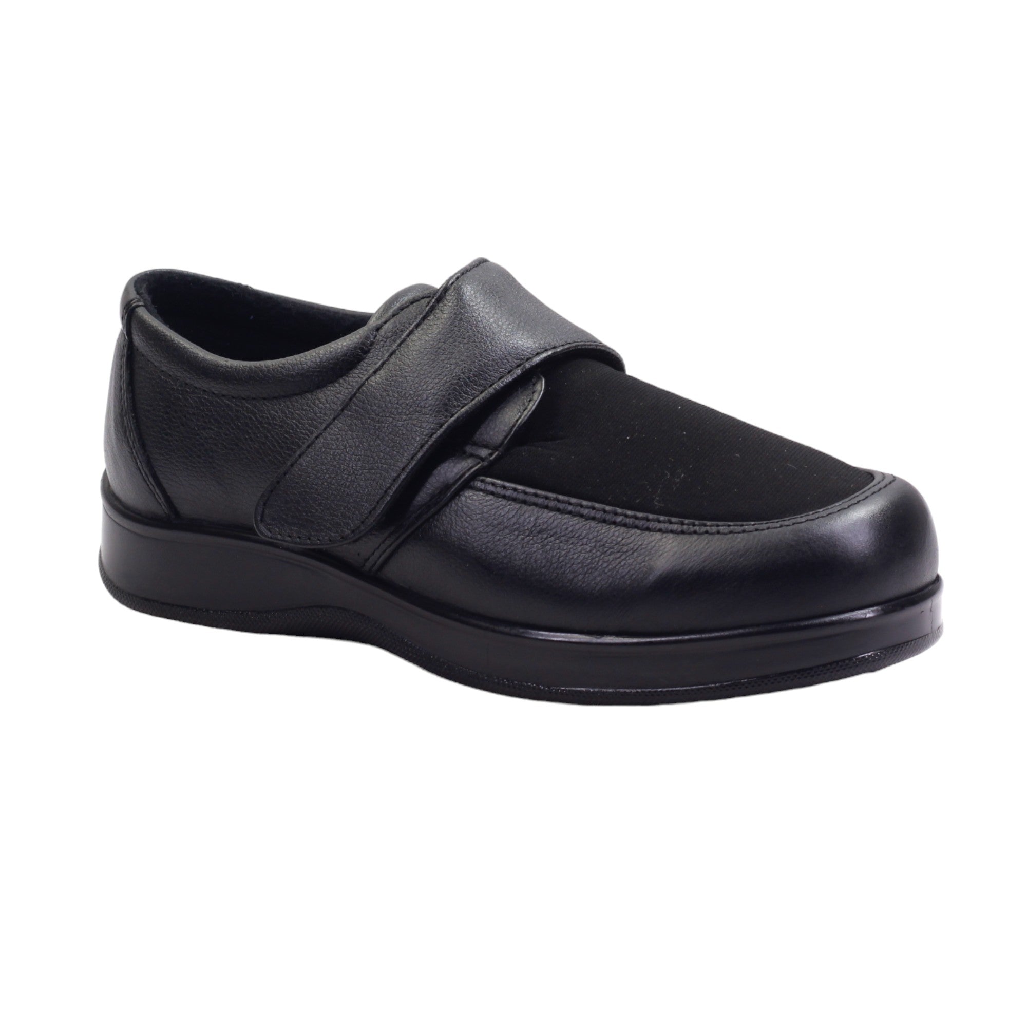 Calzado para caballero marca BioShoes en color negro. Calzado casual de piel vacuno, apto para pies delicados. Corte despejado, forro combinando textil, sintético y piel natural de cerdo, plantilla en piel natural de cerdo.