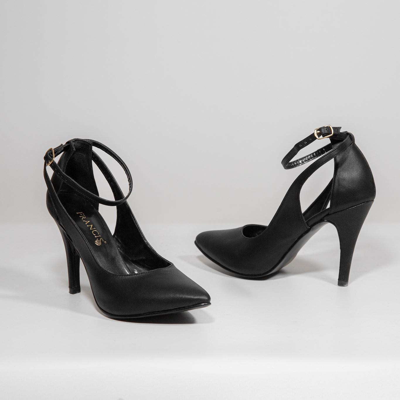 Zapatilla para dama marca Francis en color negro. Es una zapatilla formal y vestir con un tacón delgado y lucidor. Este tipo de calzado es especial y refleja mucha originalidad, su diseño tiende a ser el más sofisticado de todos los zapatos de tacón. Usar un par de D'orsay heels es estar siempre a la moda, ya que sigue en tendencia año tras año sin llamar mucho la atención.