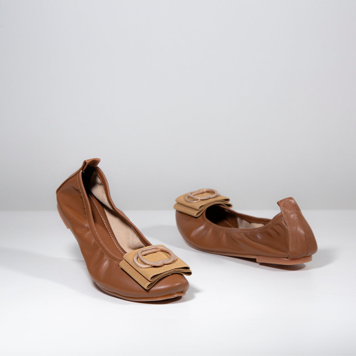 Estilo sutil que resalta sin esfuerzo, con la suavidad y comodidad que te acompañan todo el día. Flats con punta redonda, detalle textil con broche y suela curva para un ajuste natural y distinguido.