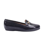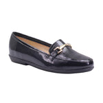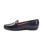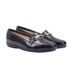 Su diseño clásico se realza con un herraje metálico dorado al frente, ideal para complementar atuendos tanto formales como casuales. La suela flexible y de perfil bajo asegura una pisada cómoda en cada paso.