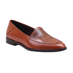 Calzado para dama marca Gino Cherruty en colores castaño y negro. Este mocasín de vestir fusiona distinción y comodidad en cada detalle. Elaborado en piel vacuno con acabado suave, su corte presenta un patrón de perforaciones decorativas que forman una figura geométrica sutil, aportando textura y sofisticación al diseño. La punta semi afilada estiliza el perfil del calzado, mientras que el forro artificial garantiza una sensación agradable durante todo el día. Con tacón bajo y estructura ligera, es ideal para ocasiones formales o semi-formales donde el estilo refinado y la comodidad son esenciales.
