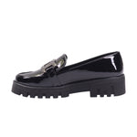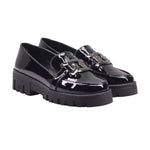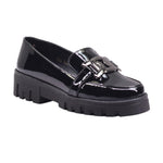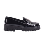 Calzado para dama marca Zócalo en color Negro charol. Este mocasín negro en charol sintético ofrece un diseño clásico con un toque moderno gracias a su acabado brillante. El detalle más distintivo es eslabón sobre el empeine, que aporta textura y elegancia al modelo. Su suela negra resistente brinda estabilidad y durabilidad, ideal para el uso diario. Con una silueta cerrada y cómoda, este calzado es perfecto para looks formales, de oficina o casuales con estilo refinado.