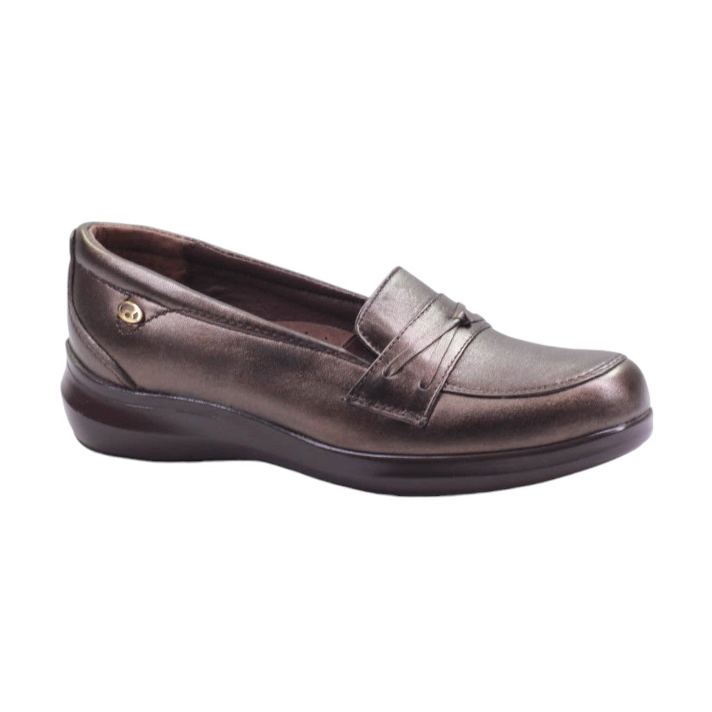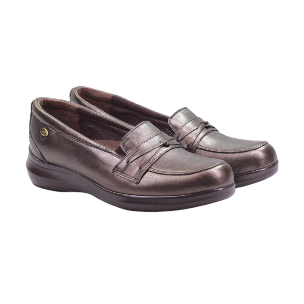 Mocasín para dama de uso casual con tiras frontales de adorno