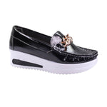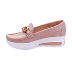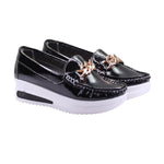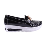 Mocasín para dama con suela medio-alta y eslabón de adorno dorado