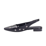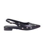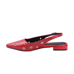 Calzado para dama marca Savy en colores negro y rojo. Este modelo cuenta con un diseño destalonado y una tira trasera con hebilla que asegura un ajuste cómodo. Su tacón de 1.5 cm ofrece una altura perfecta para caminar todo el día con comodidad. El corte con perforaciones y su punta elegante lo hacen ideal para cualquier ocasión.