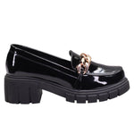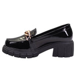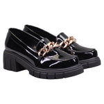 Calzado para dama marca Zócalo  en color Negro, Este modelo de eslabones dorados cuenta con una plantilla de confort que asegura comodidad, mientras que su tacón de 5.00 centímetros proporciona altura sin sacrificar estabilidad. Además, su elegante acabado en charol le da un toque de sofisticación a cualquier atuendo.