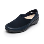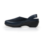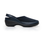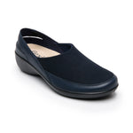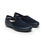 Calzado para dama marca Flexi en color azul. Modelo con tira trasera, corte en piel y textil, una cómoda suela con altura de 4.5 cm.
