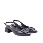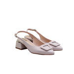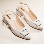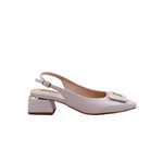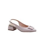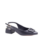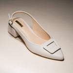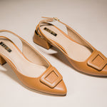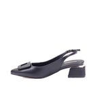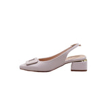 Mule para dama de tacón bajo ancho y adorno cuadrado de frente