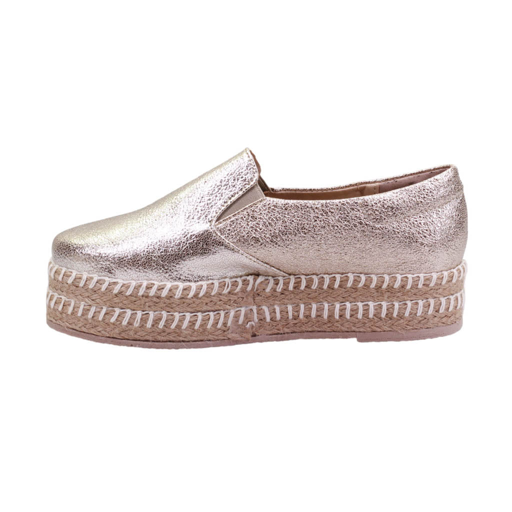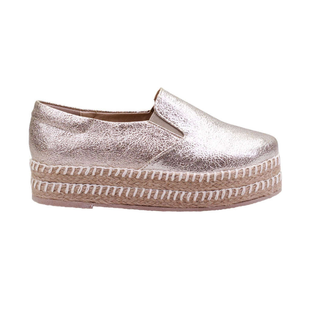Calzado para dama marca Clinton en color oro. Este modelo de plataforma corrida cuenta con un tejido. Con una altura de 3.5 cm, la plantilla de confort brinda un soporte adicional para tu pie.