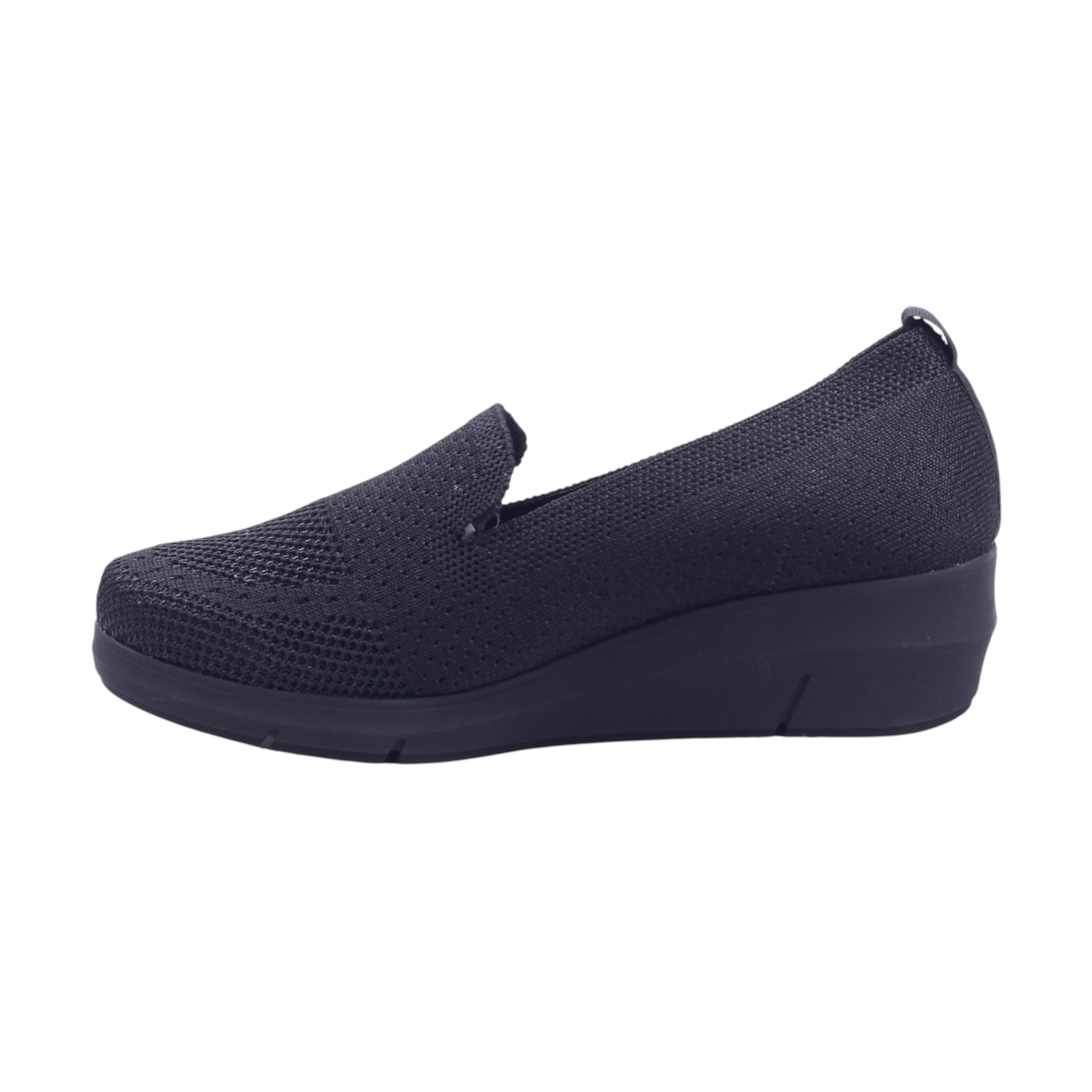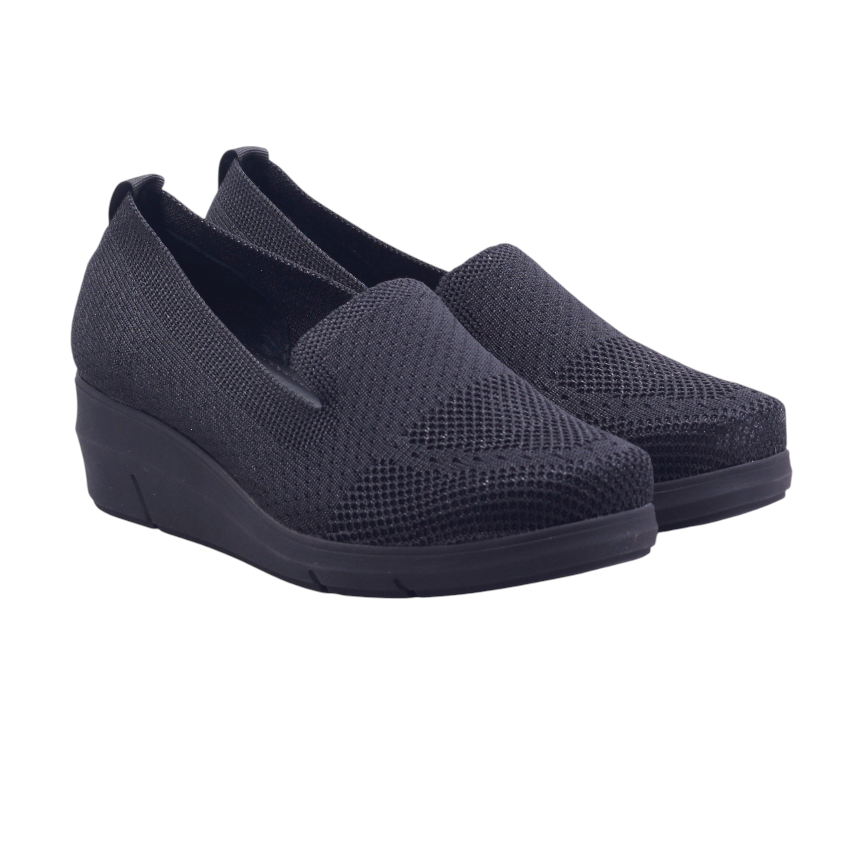 Calzado para dama marca Manet Moda en color negro. Calzado tipo slip-on con corte textil y forro porcino, ideal para quienes buscan comodidad sin perder estilo. Su plataforma de 4.00 cm brinda altura ligera y amortiguación, mientras que el diseño tejido en color negro ofrece frescura y flexibilidad al caminar. El patrón texturizado en el corte aporta un toque contemporáneo, y la suela robusta garantiza estabilidad en cada paso. Perfecto para uso casual, urbano o jornadas prolongadas.Conoce la calidad que solo Zapatería Francis te puede dar. Anímate a hacer clic y pídelas en línea hoy mismo. Recuerda que las recibes en la puerta de tu casa. Envío gratis en Guadalajara.