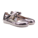 Zapato infantil metálico con ajuste práctico y diseño perforado
