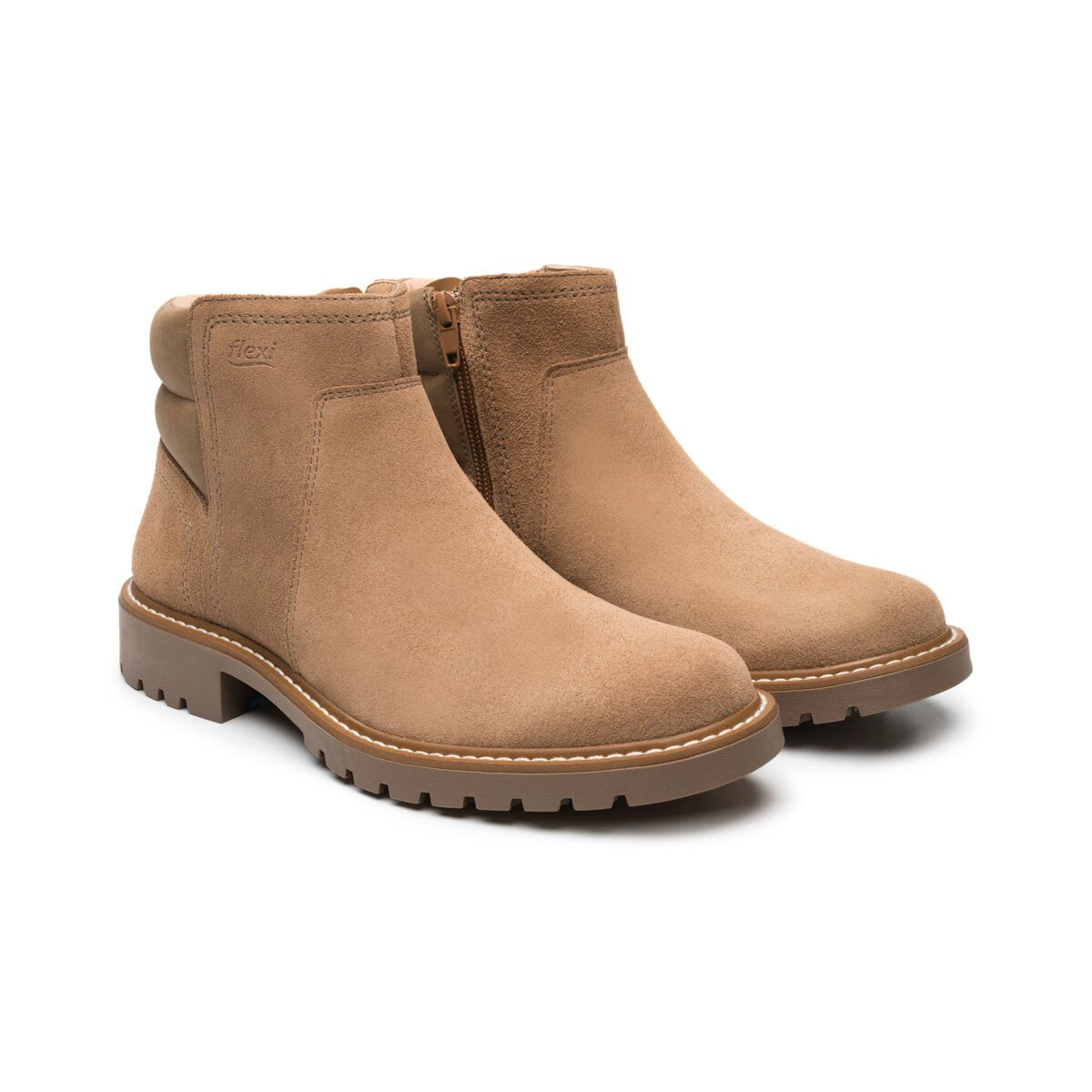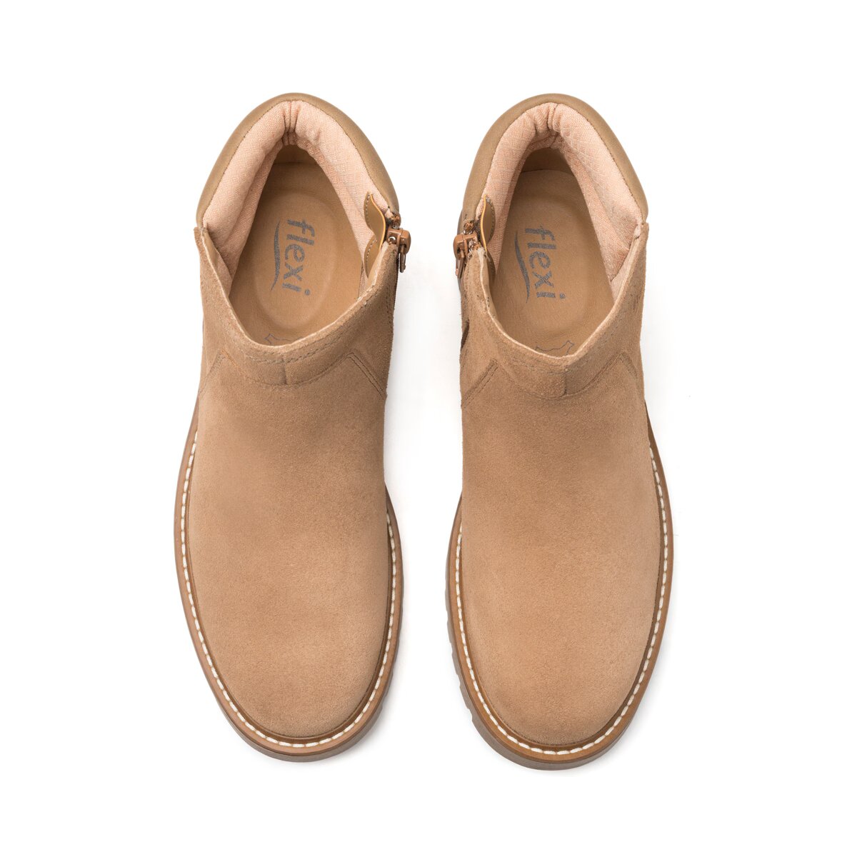 Botín para dama marca Flexi en color Arena. Este modelo ofrece una suela corrida con altura de 3.7 cm que brinda comodidad y estabilidad al caminar. Proporciona un ajuste personalizado y su corte en piel vacuna y cierre lateral garantizan un calce perfecto. Una opción versátil para tu día a día.