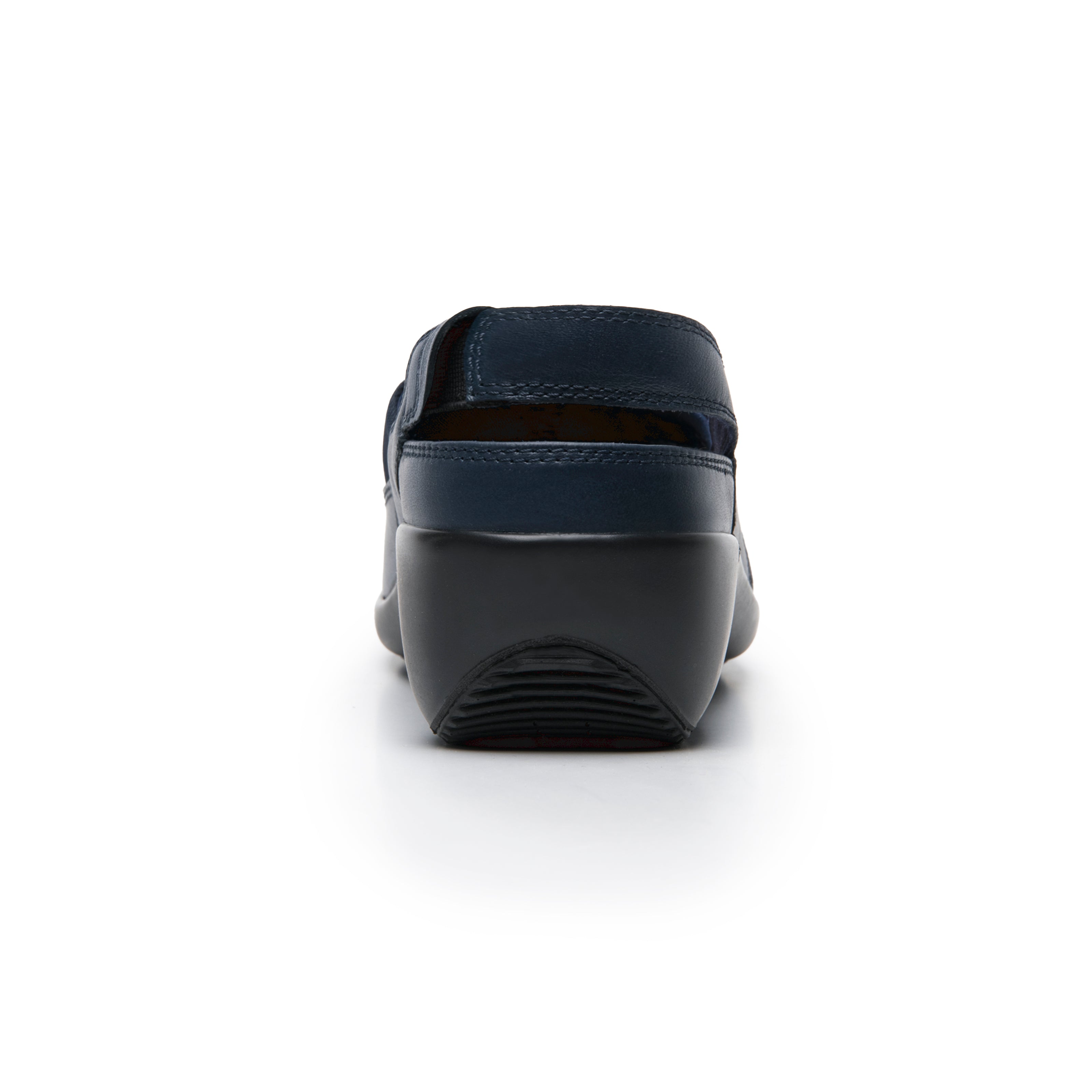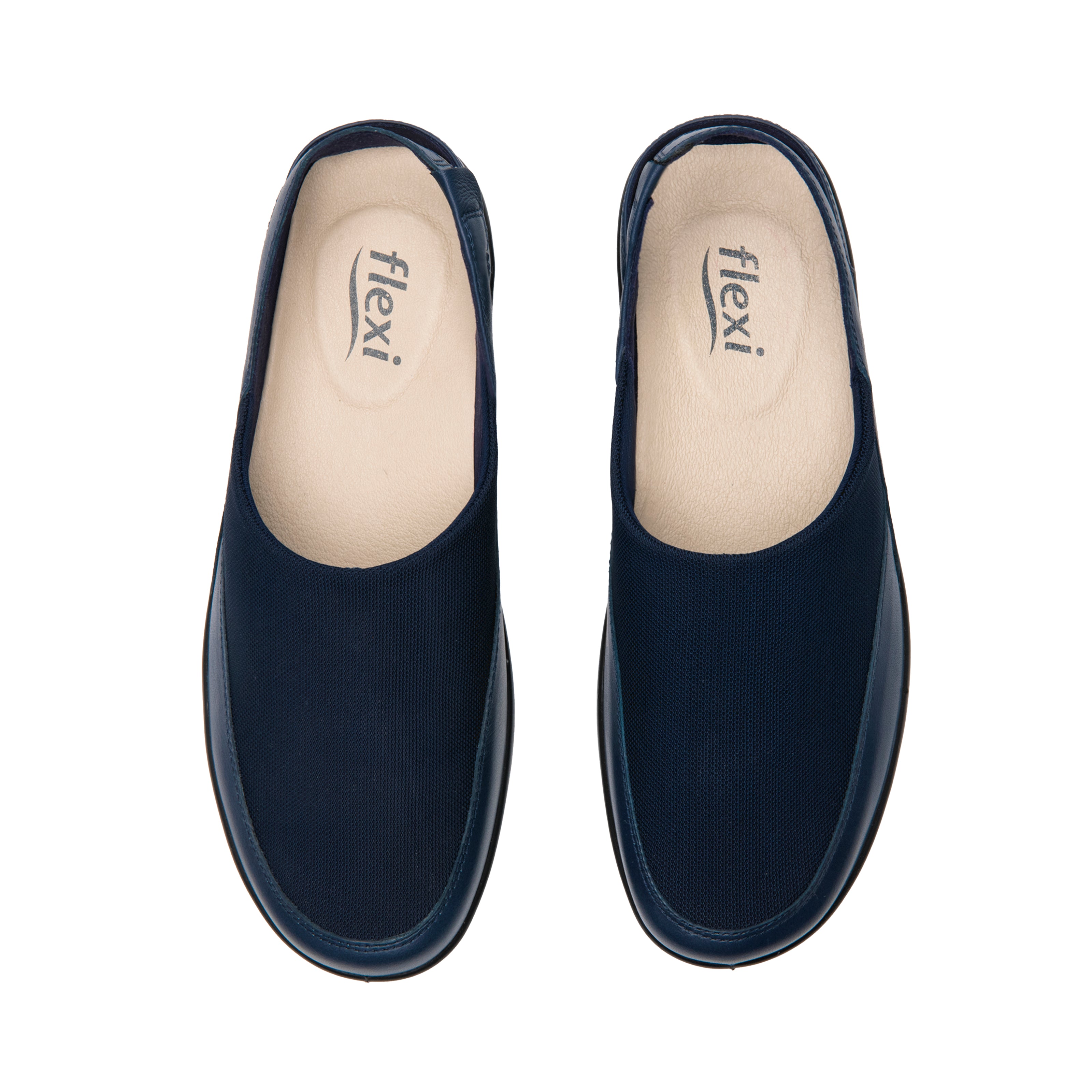 Calzado para dama marca Flexi en color azul. Modelo con tira trasera, corte en piel y textil, una cómoda suela con altura de 4.5 cm.