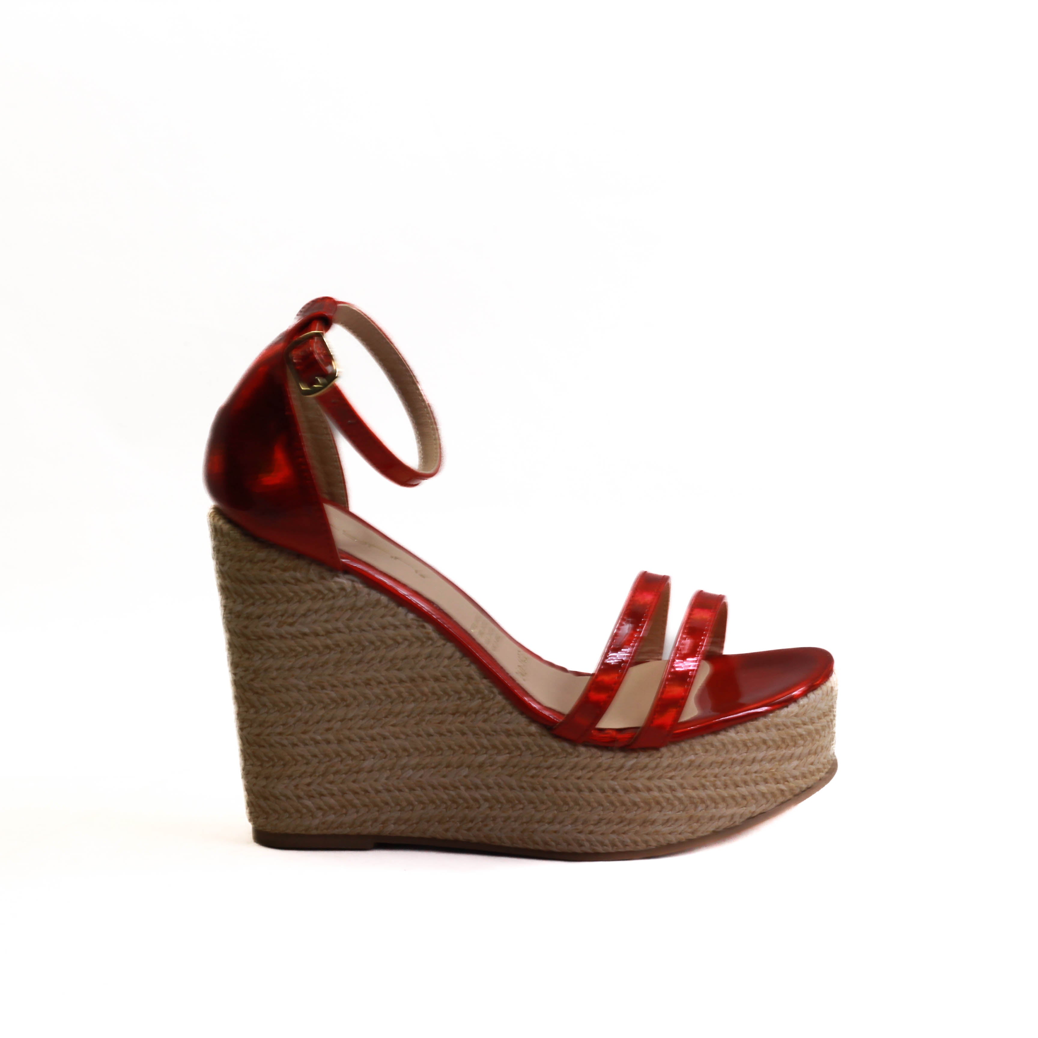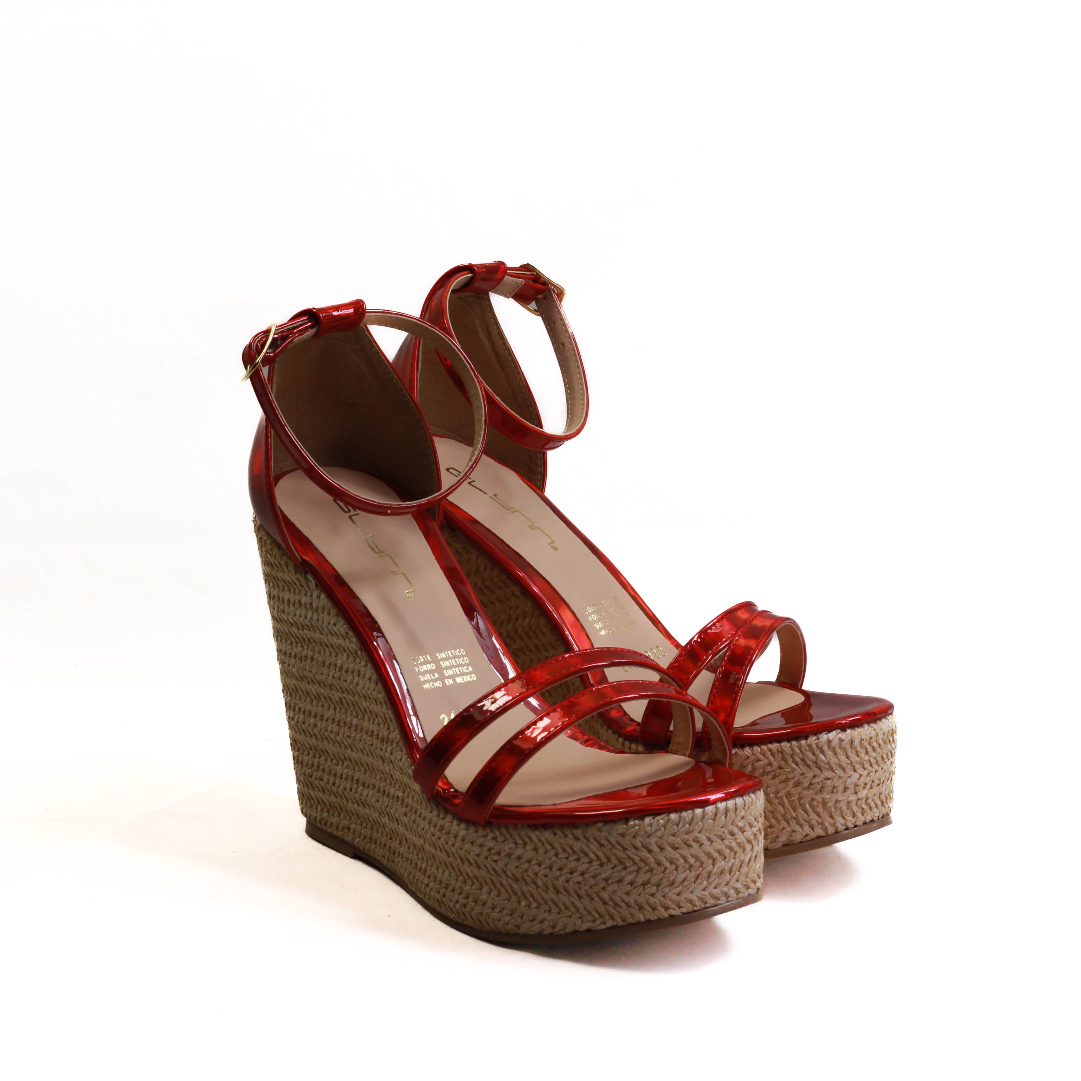 Plataforma para dama marca Glynn en color late y escarlata. Cuenta con doble tiras delantera y ajuste al tobillo para mejor soporte y comodidad. Este modelo forma parte de nuestra línea de sandalias con plataforma que te ofrece altura y comodidad, además tiene un bonito tacón cuña de tejido de imitación.