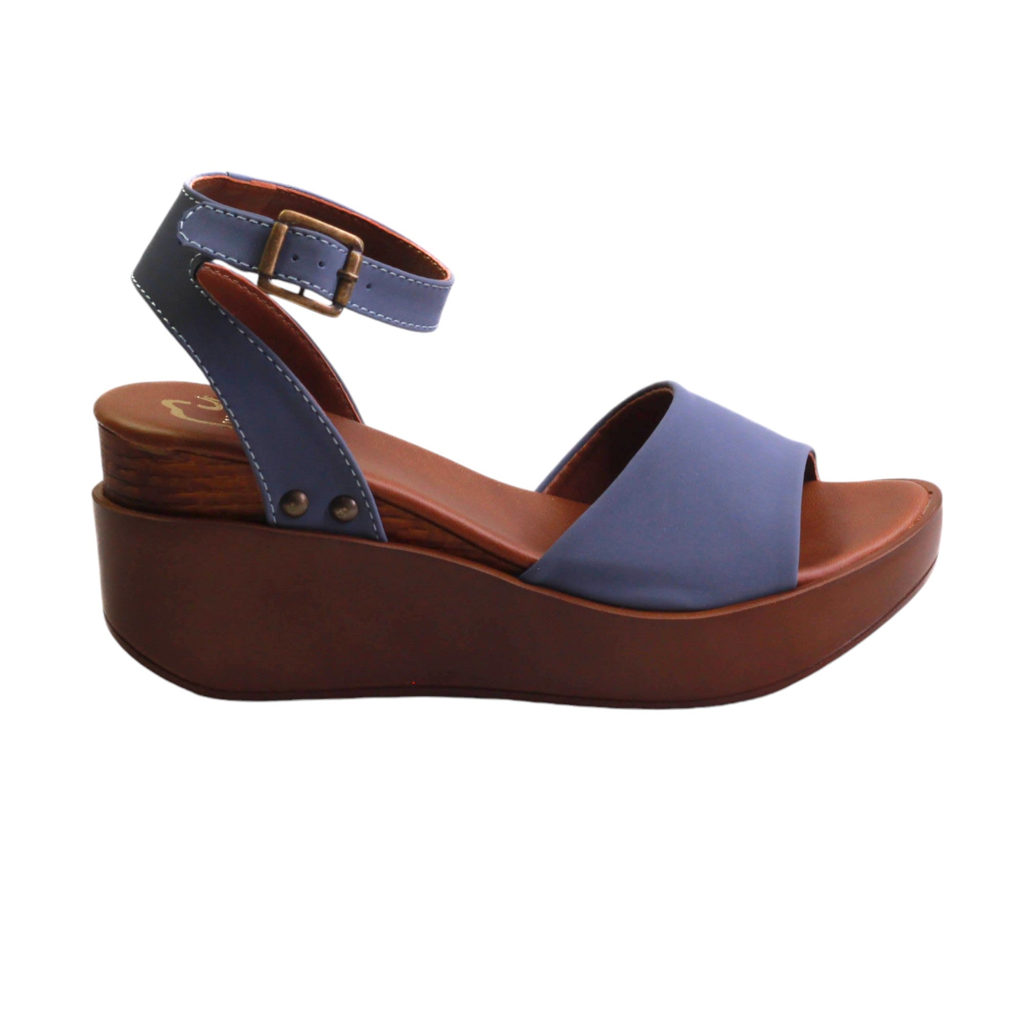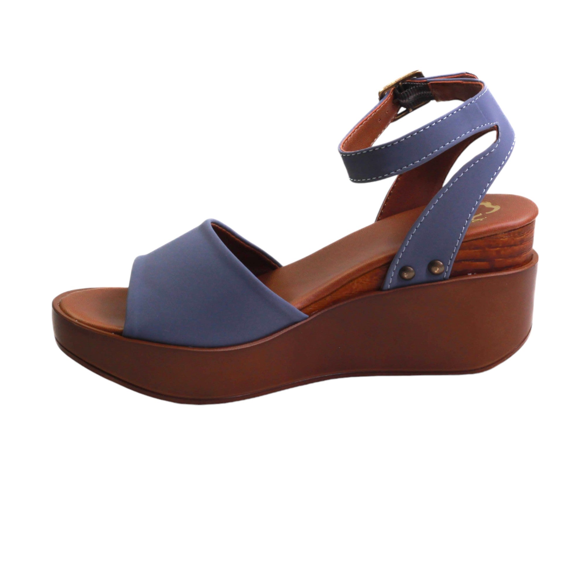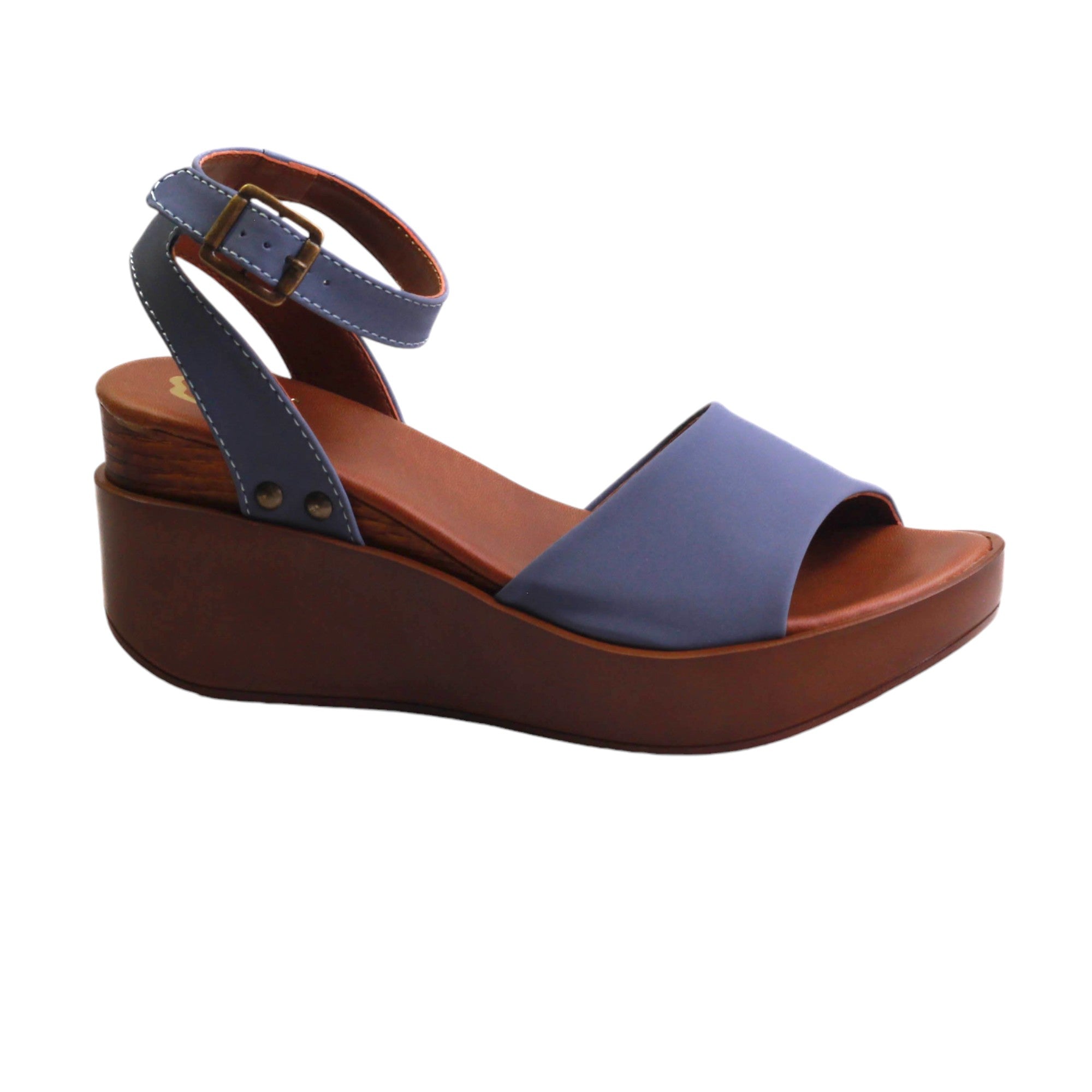 Sandalia para dama marca Nomadas en colores avellana y azul, es un modelo de plataforma alta con platilla sobresaliente de la misma plataforma, lo cual te da mas altura. es una sandalia de Confort que te proporciona un calce perfecto y te brindará comodidad y estilo en cada paso.