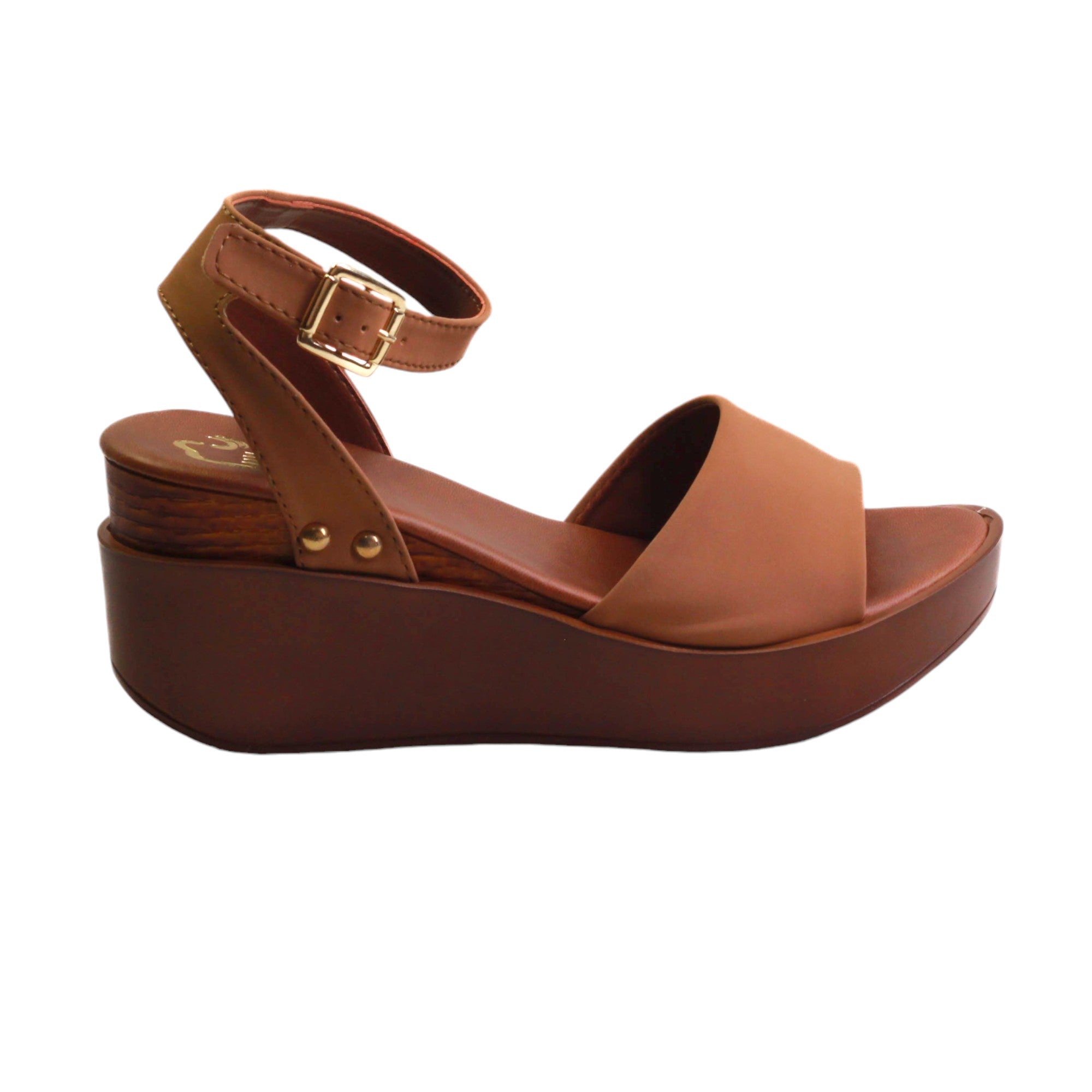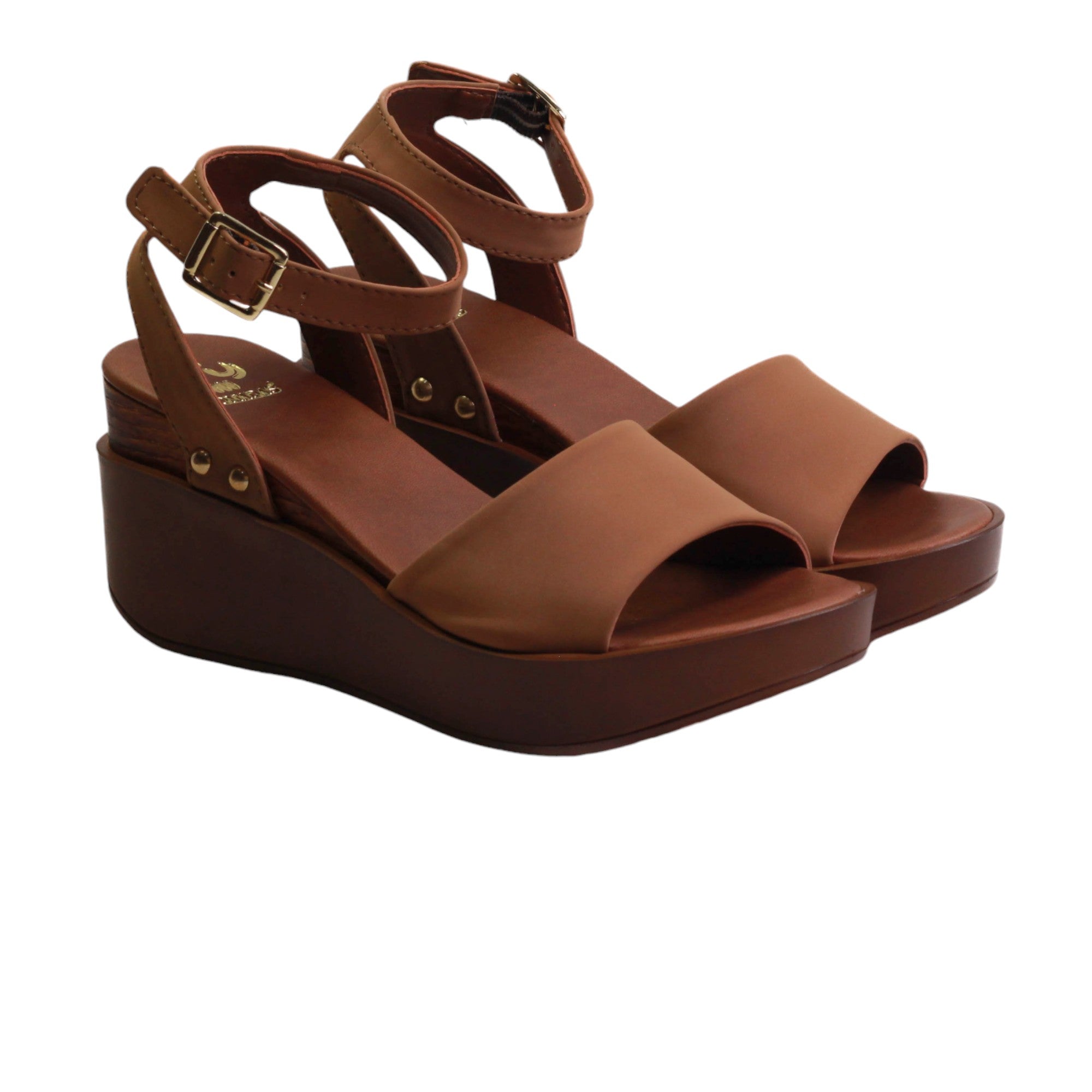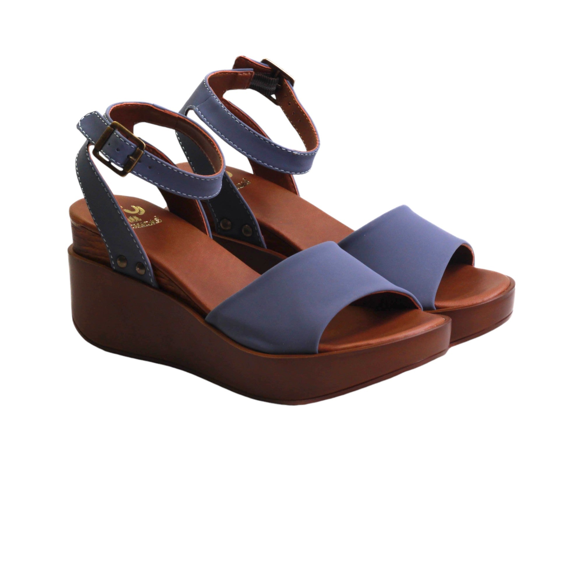 Sandalia para dama marca Nomadas en colores avellana y azul, es un modelo de plataforma alta con platilla sobresaliente de la misma plataforma, lo cual te da mas altura. es una sandalia de Confort que te proporciona un calce perfecto y te brindará comodidad y estilo en cada paso.