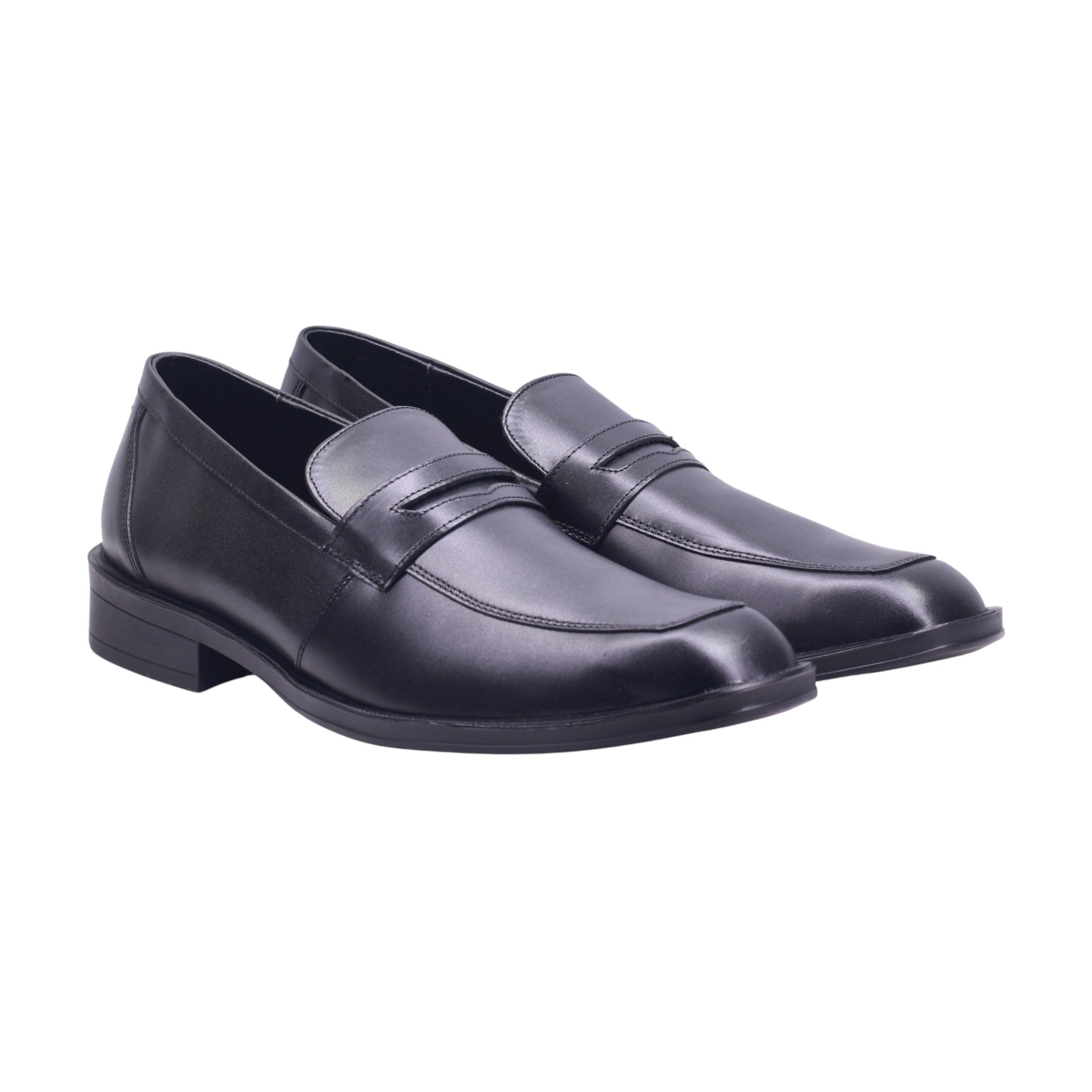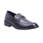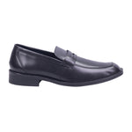 Calzado tipo mocasín para caballero con corte vacuno y forro porcino, ideal para quienes buscan un estilo formal y cómodo para uso ejecutivo o diario. El diseño presenta puntera redonda tipo moc toe, con costuras visibles que refuerzan el contorno y aportan carácter. La parte superior incluye franja decorativa tipo antifaz, que mantiene el estilo tradicional del mocasín. El acabado pulido en tono negro brinda versatilidad para combinar con trajes, pantalones de vestir o conjuntos business casual. El tacón de 3.00 cm ofrece soporte y presencia, mientras que la plantilla acolchada mejora el confort en jornadas prolongadas. La suela en tono oscuro con acabado liso complementa el diseño con discreción y elegancia.
