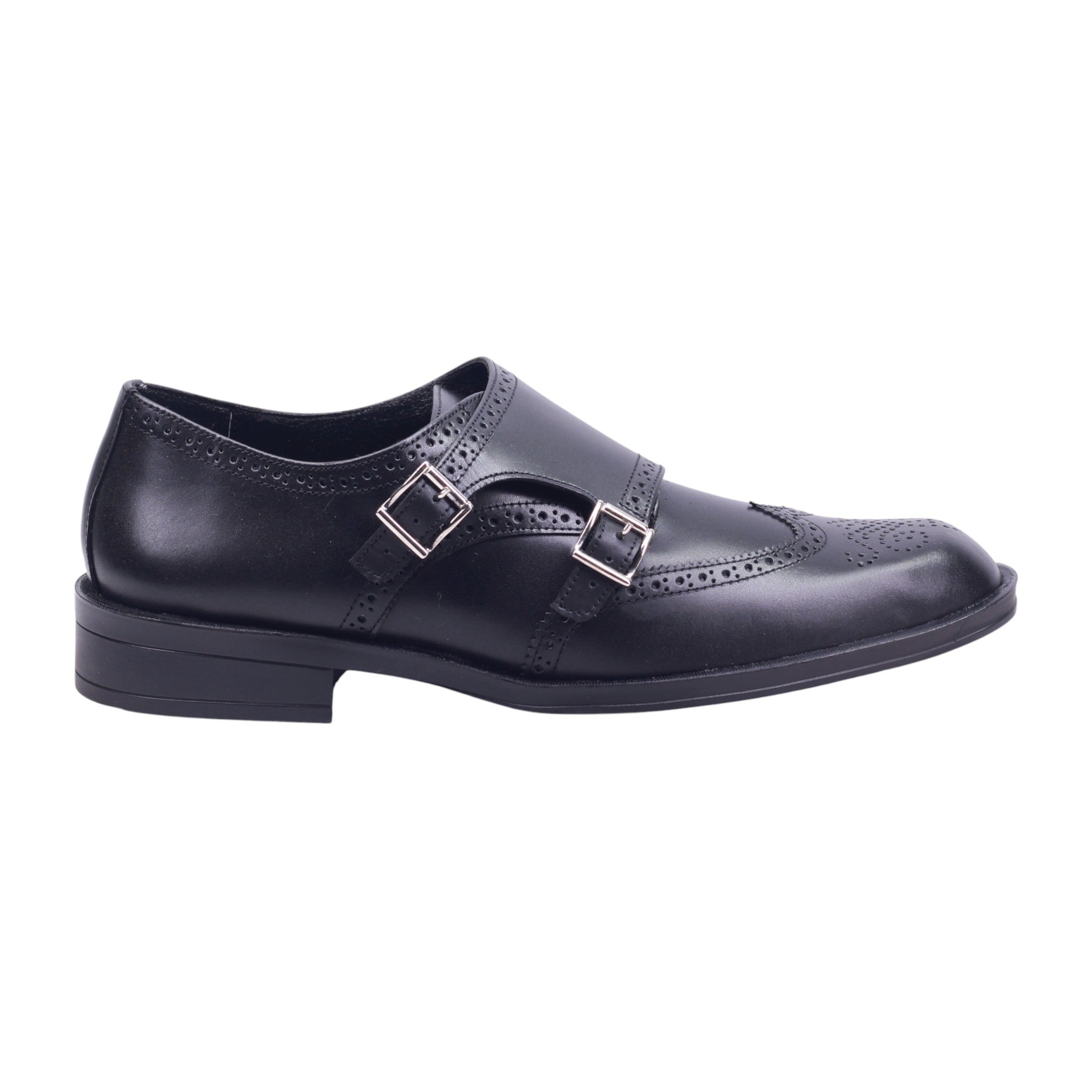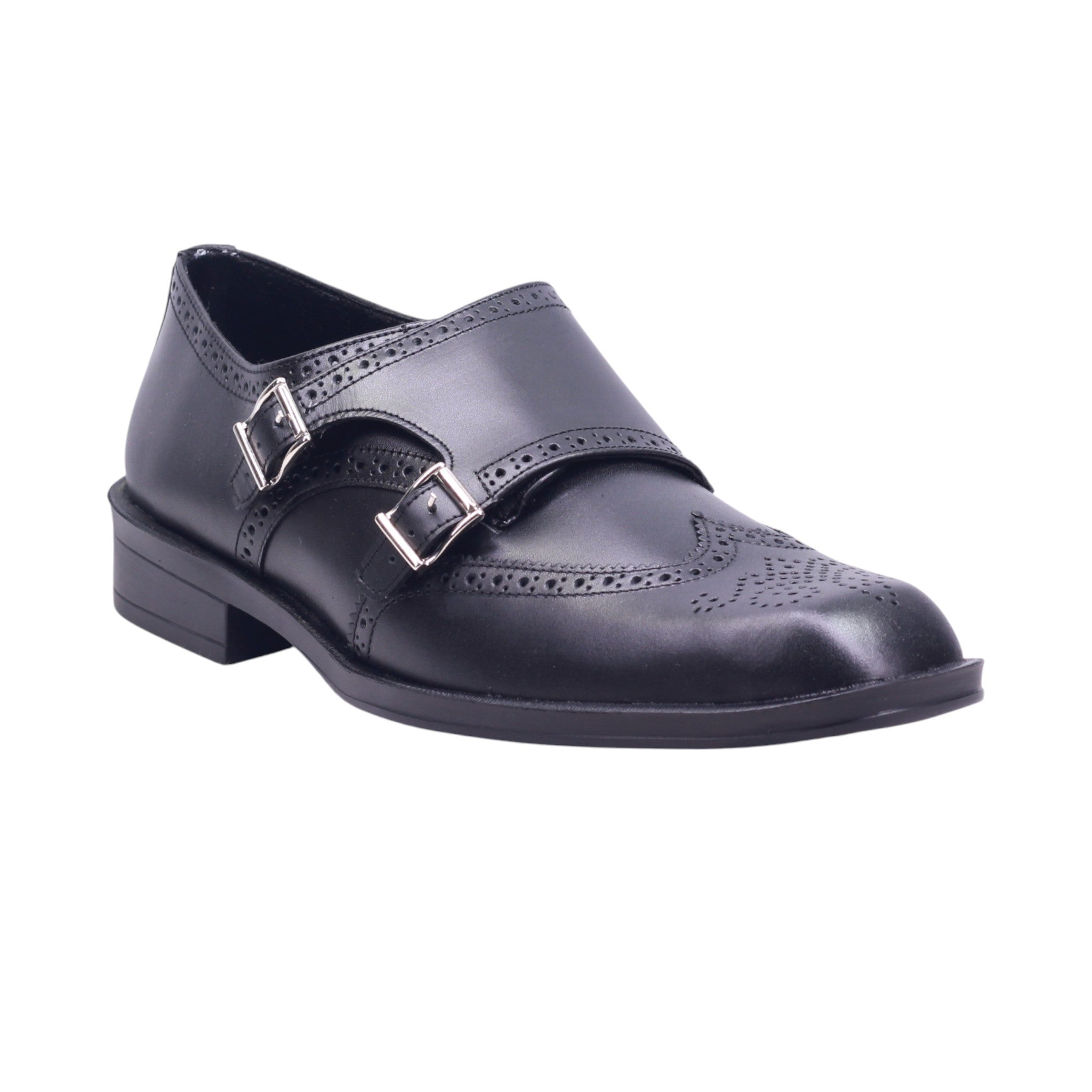 Zapato de vestir para caballero con doble hebilla y diseño brogue