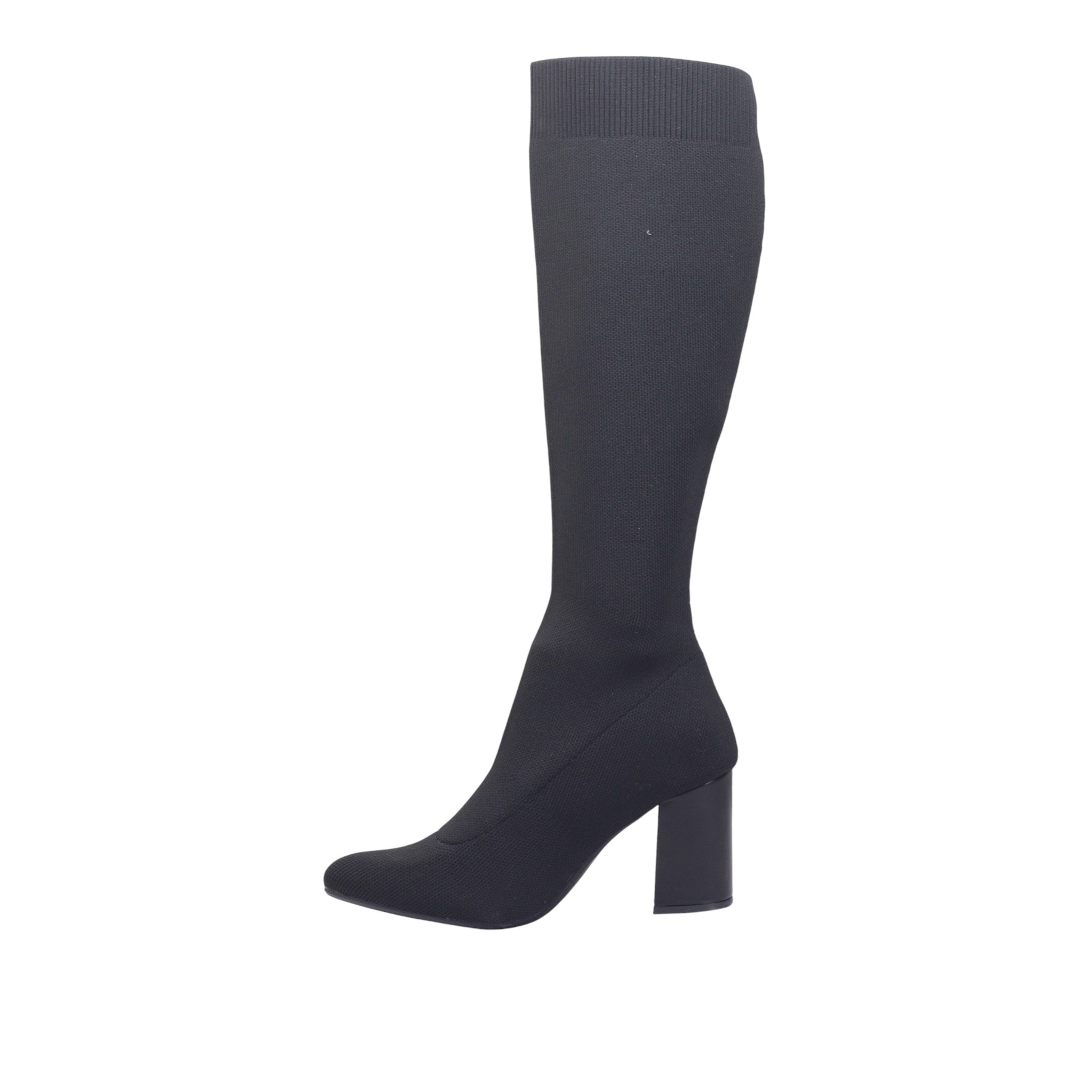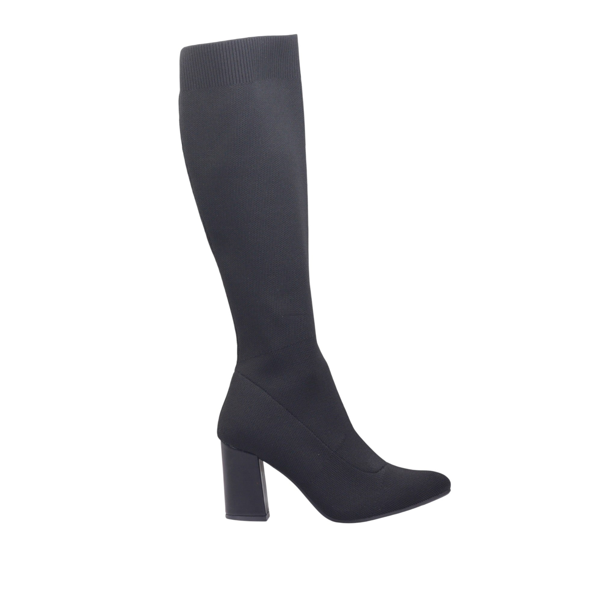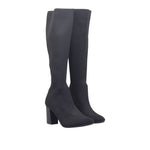 Botín para dama marca Berlin en color negro. Modelo de corte y forro textil, con diseño tipo calcetín que se ajusta suavemente a la pierna, brindando una silueta limpia y moderna. El tubo de 40 cm cubre hasta debajo de la rodilla, ideal para estilizar el outfit y proteger del frío. El tacón de 8.00 cm tipo bloque aporta altura con estabilidad, perfecto para uso prolongado. El acabado liso y el tejido elástico permiten un ajuste cómodo y firme, mientras que la punta afilada añade un toque sofisticado. Ideal para looks urbanos, formales o combinaciones con vestidos, faldas o jeans ajustados.