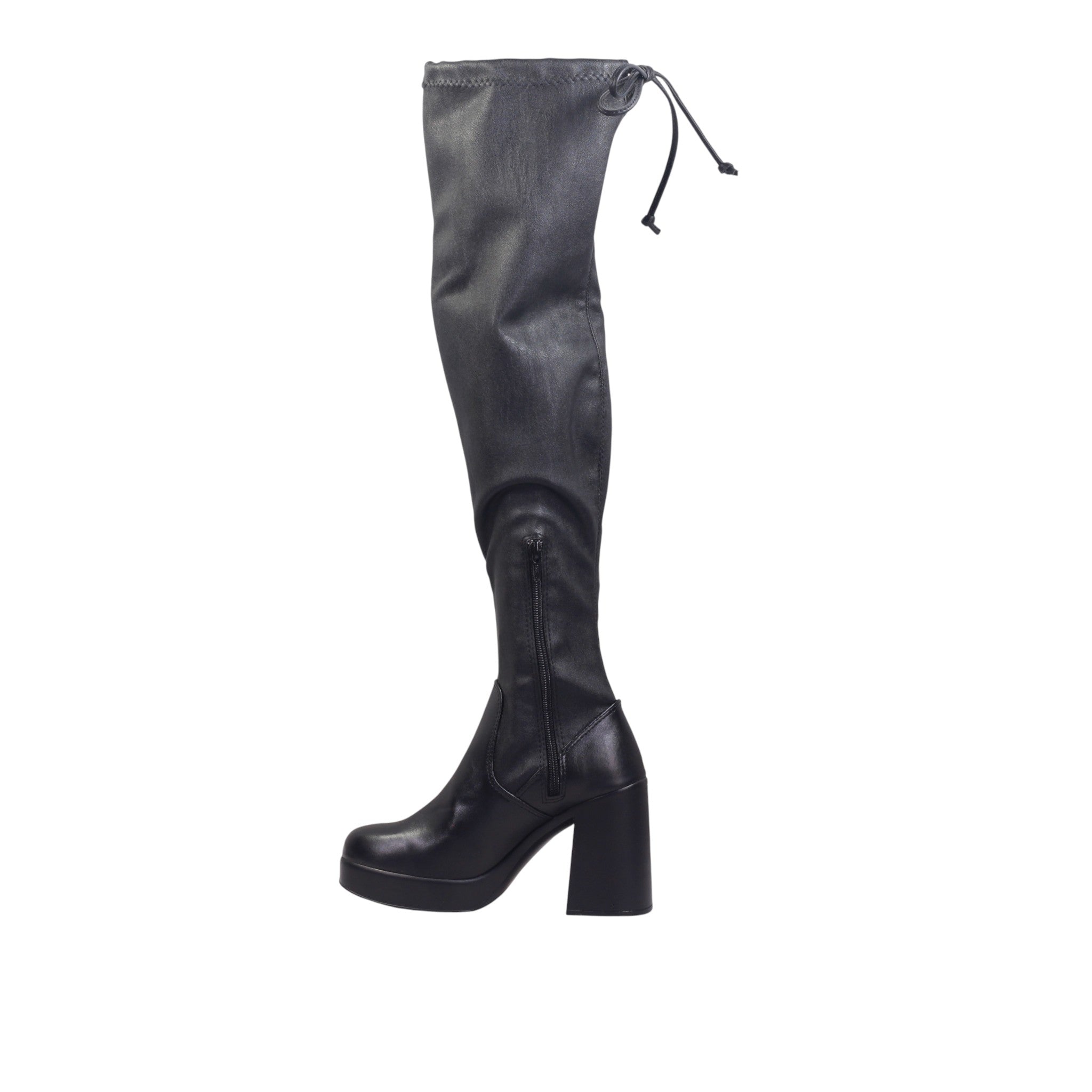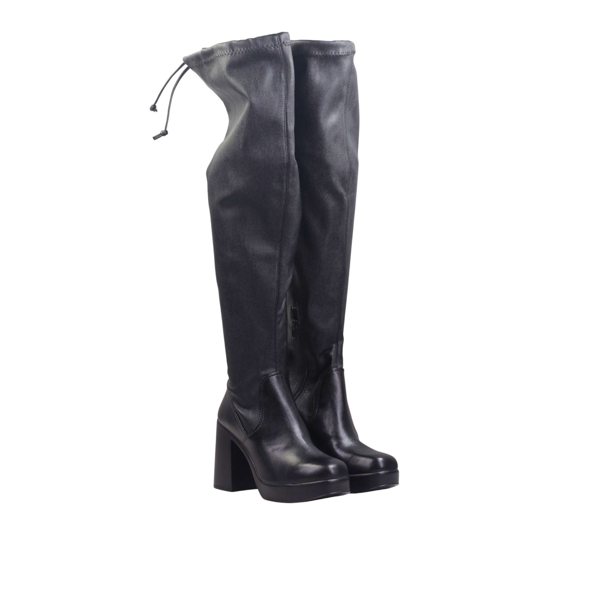 Bota para dama marca Nómadas en color negro. Obtén un look elegante y cómodo con nuestro modelo de tacón con su altura de 9.5 cm y plataforma de 2.5 cm, brindan el balance perfecto entre estilo y confort. Además, su tubo extra largo y tira delgada de ajuste te harán lucir aún más estilizada. ¡Disfruta de la comodidad de su plantilla especial!