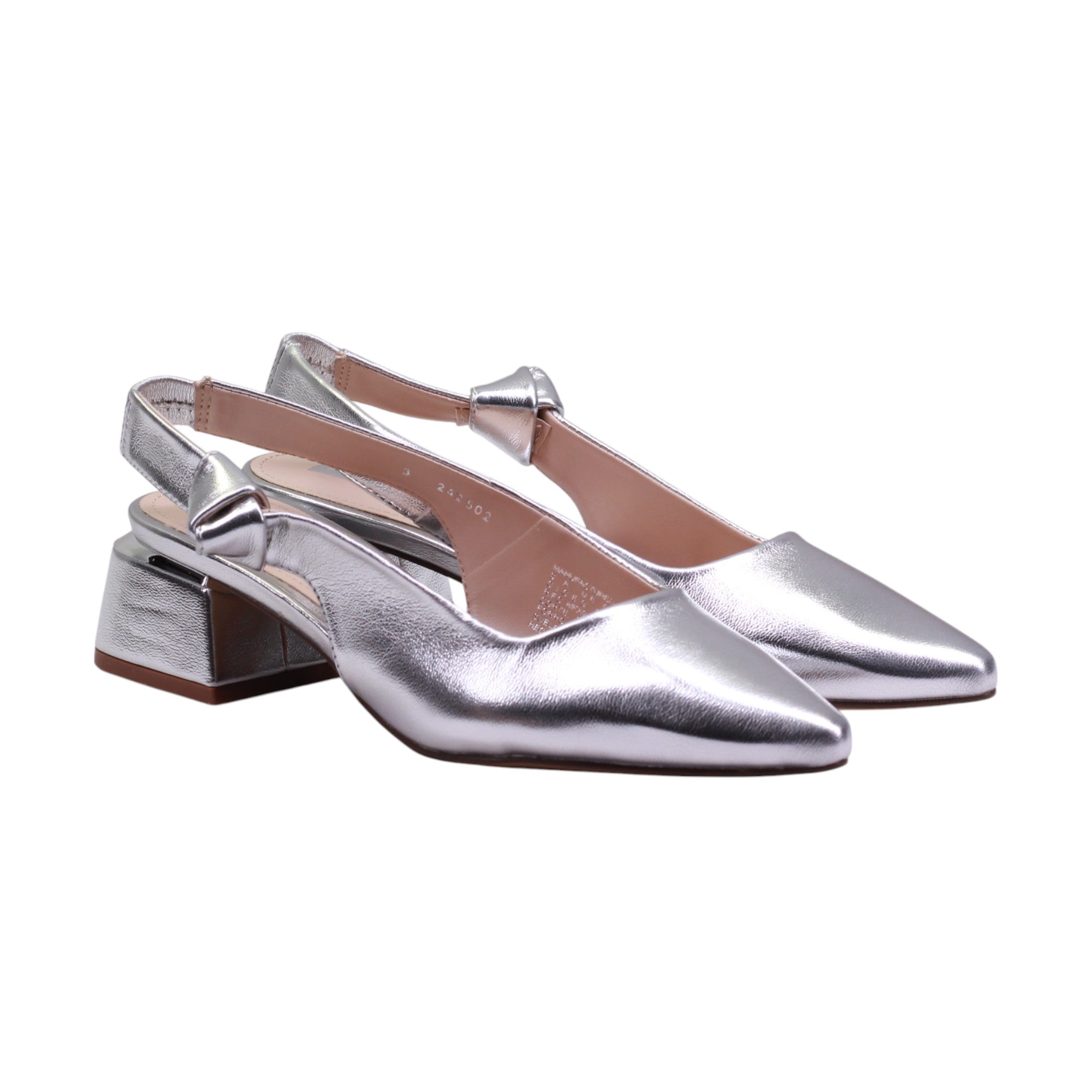 Zapatilla Para Dama marca Efe en colores negro y plata. Con corte y forro artificiales, este modelo presenta diseño destalonado con tira trasera elástica para ajuste cómodo. La punta cerrada estiliza el pie, mientras el tacón cuadrado de 3.00 cm aporta estabilidad sin perder elegancia. Ideal para ocasiones formales o looks sofisticados con toque moderno.