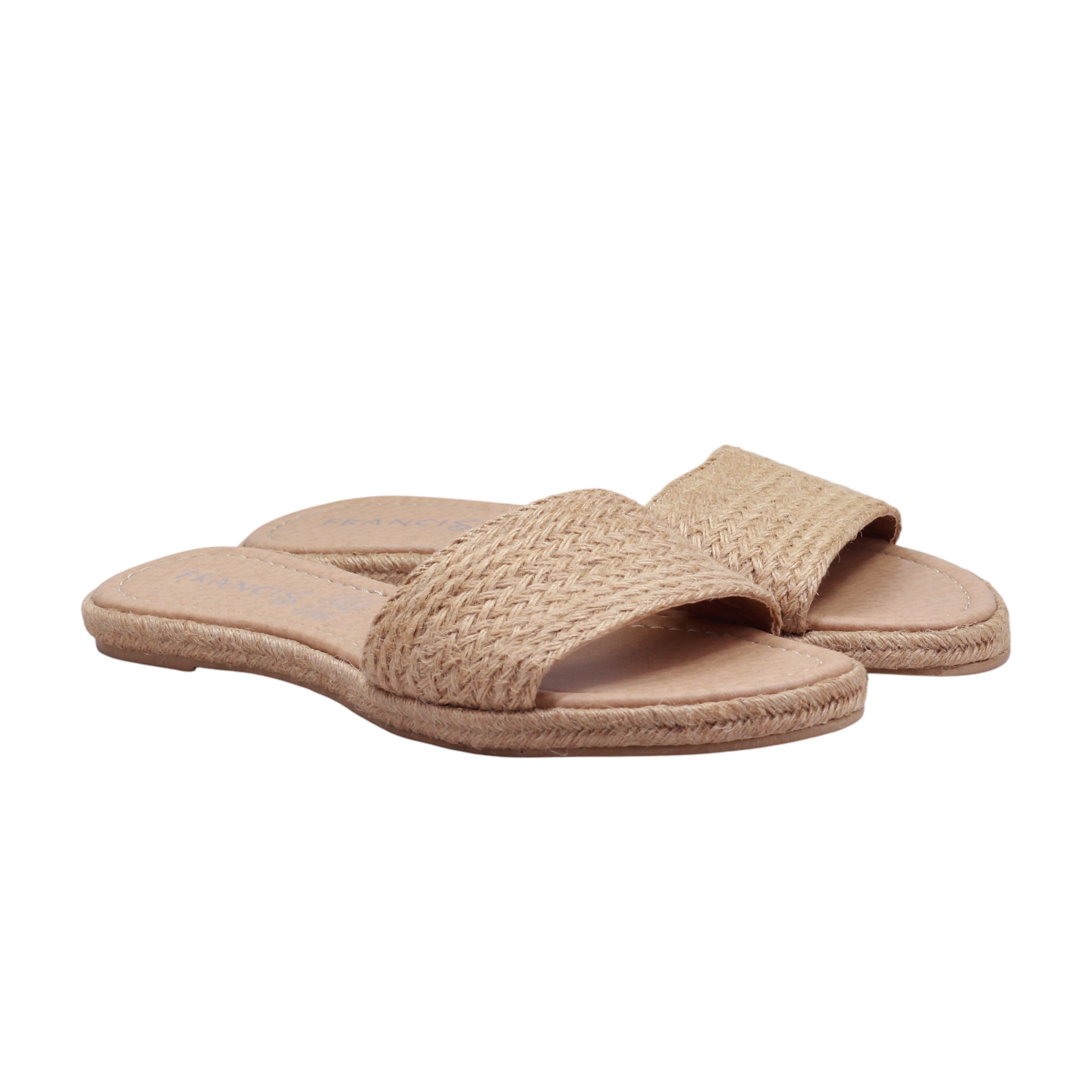 Sandalia para dama marca Francis en color maquillaje y negro. Sandalia de descanso con corte trenzado. Esta sandalia destaca por su plantilla acojinada y su atractiva vista.