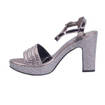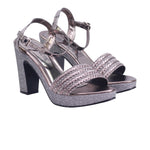 Zapatilla para dama marca Francis en color inox. Con corte y forro artificial, este modelo presenta tacón de 9.00 cm y plataforma de 2.5 cm, ambos cubiertos en glitter plateado que aporta luminosidad y estilo. La base elevada estiliza la silueta sin comprometer la estabilidad, mientras el tacón grueso brinda soporte firme. El diseño incluye tira frontal trenzada en acabado brillante y tira al tobillo con hebilla metálica para ajuste seguro. Ideal para eventos nocturnos o looks festivos con presencia sofisticada.
