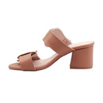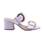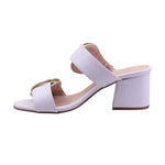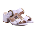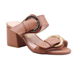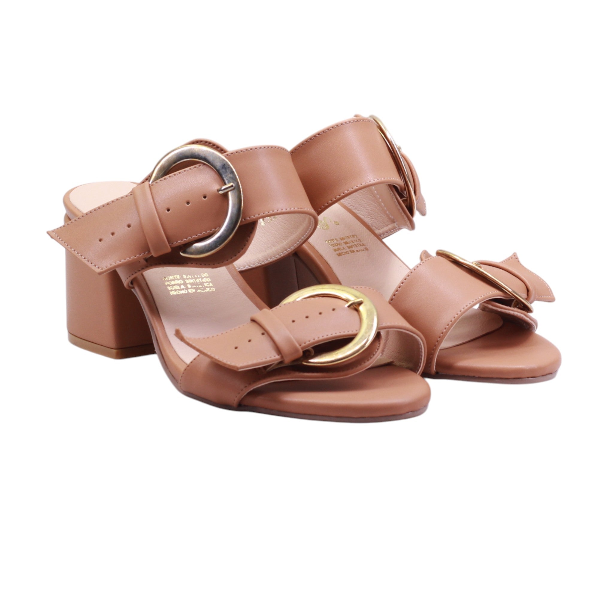 Sandalia de tacón medio con doble tira y hebillas doradas