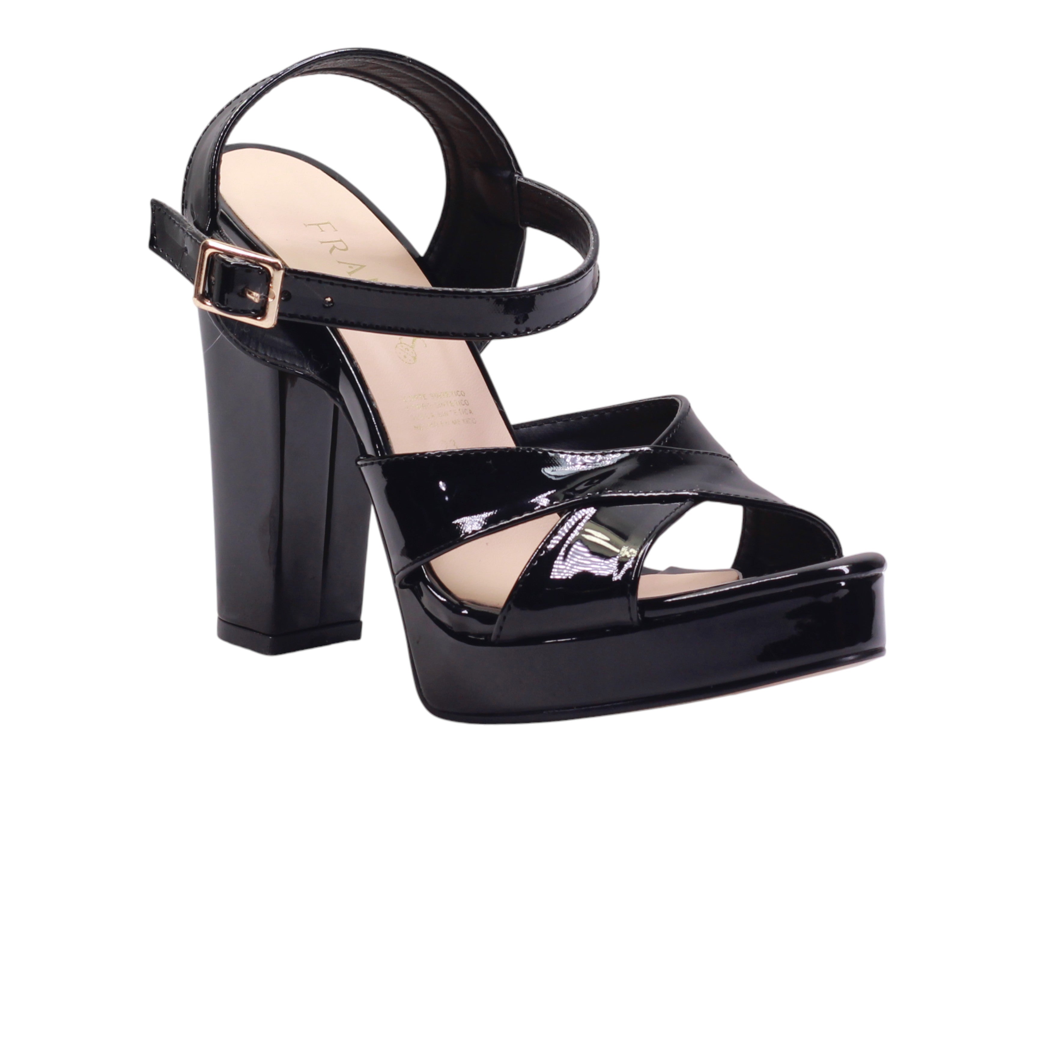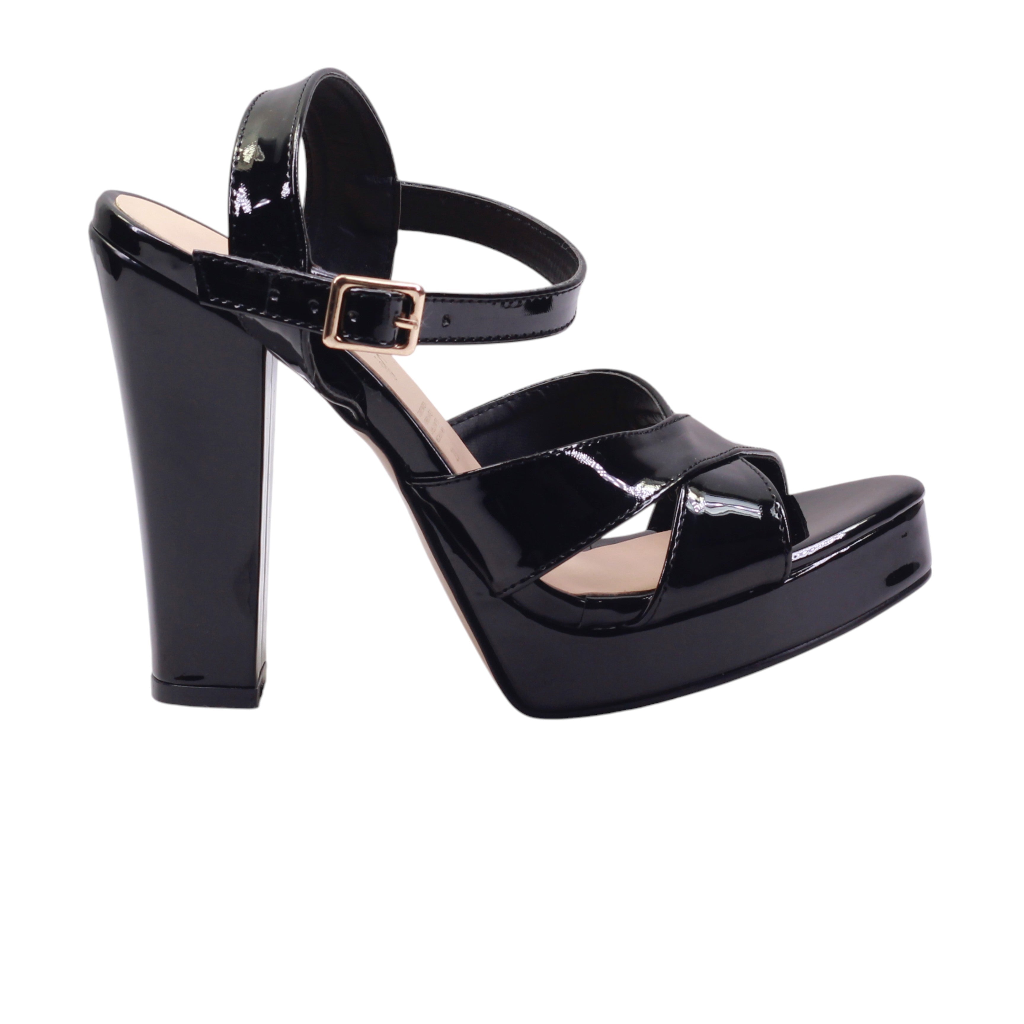 Zapatilla de plataforma en charol negro con ajuste al tobillo