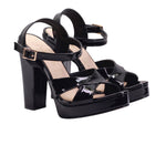 Perfecta para combinar con vestidos largos, faldas o conjuntos de noche, esta sandalia destaca por su presencia y acabado pulido.
