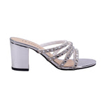La plantilla acolchada en tono beige mejora la sensación al caminar, mientras que el talón abierto y la punta descubierta favorecen la frescura. El diseño se complementa con una silueta estilizada y un acabado brillante que lo convierte en una pieza clave para looks de noche, vestidos largos o conjuntos de fiesta.