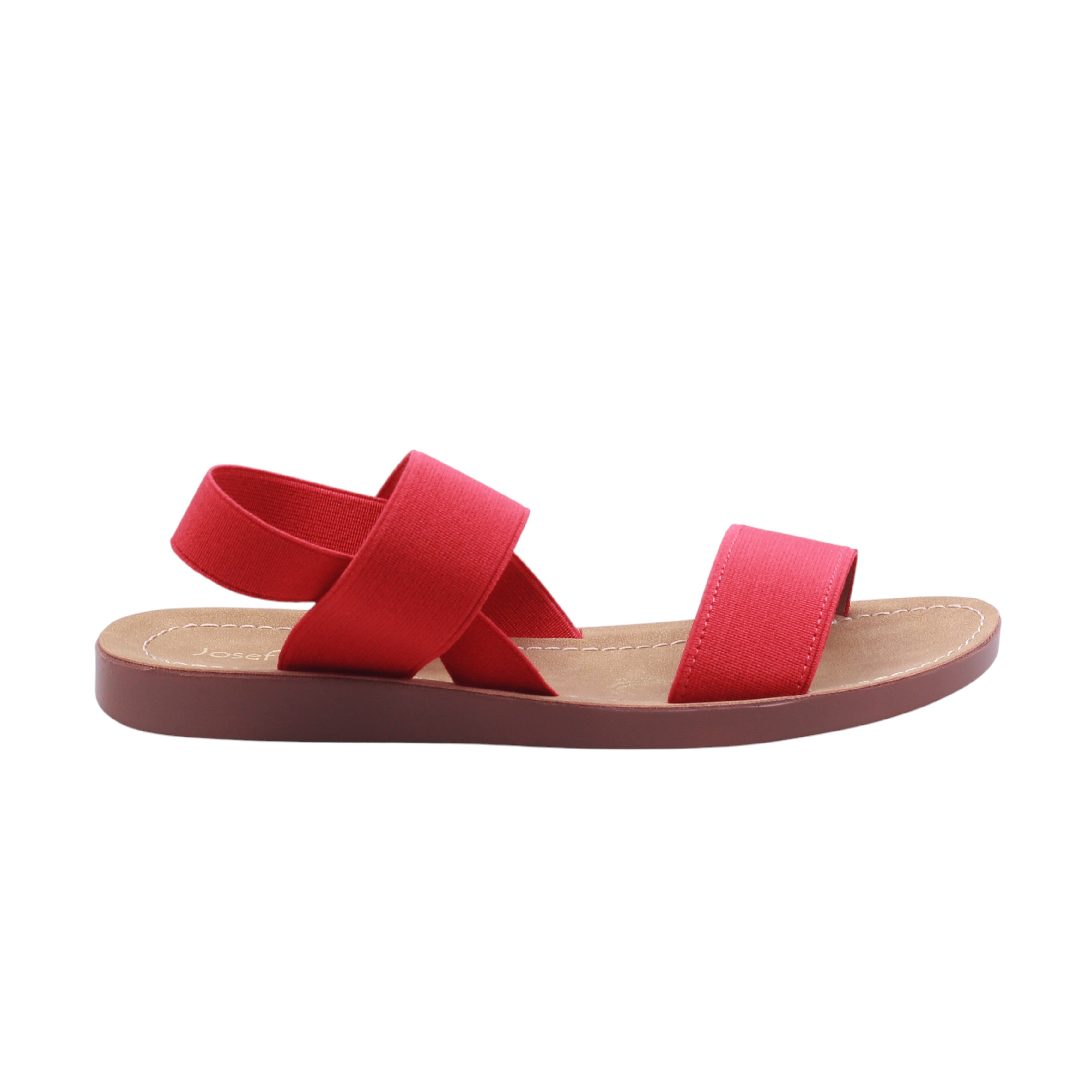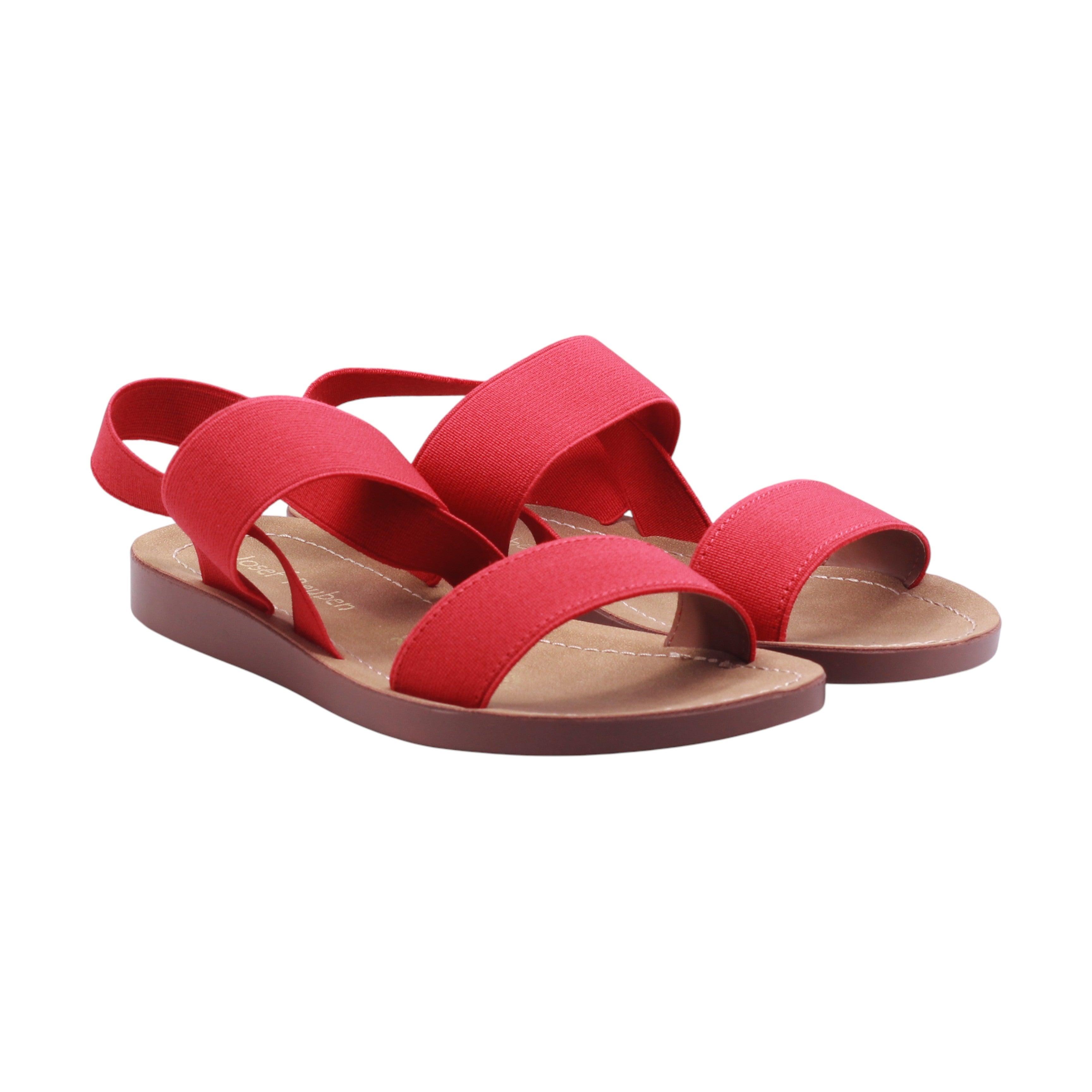 Sandalia para dama marca TMY en colores negro, beige y rojo. Diseño de tiras elásticas y suela ergonómica para un aspecto atractivo. Su ligera plataforma permitirá que esté cómoda a cada paso.