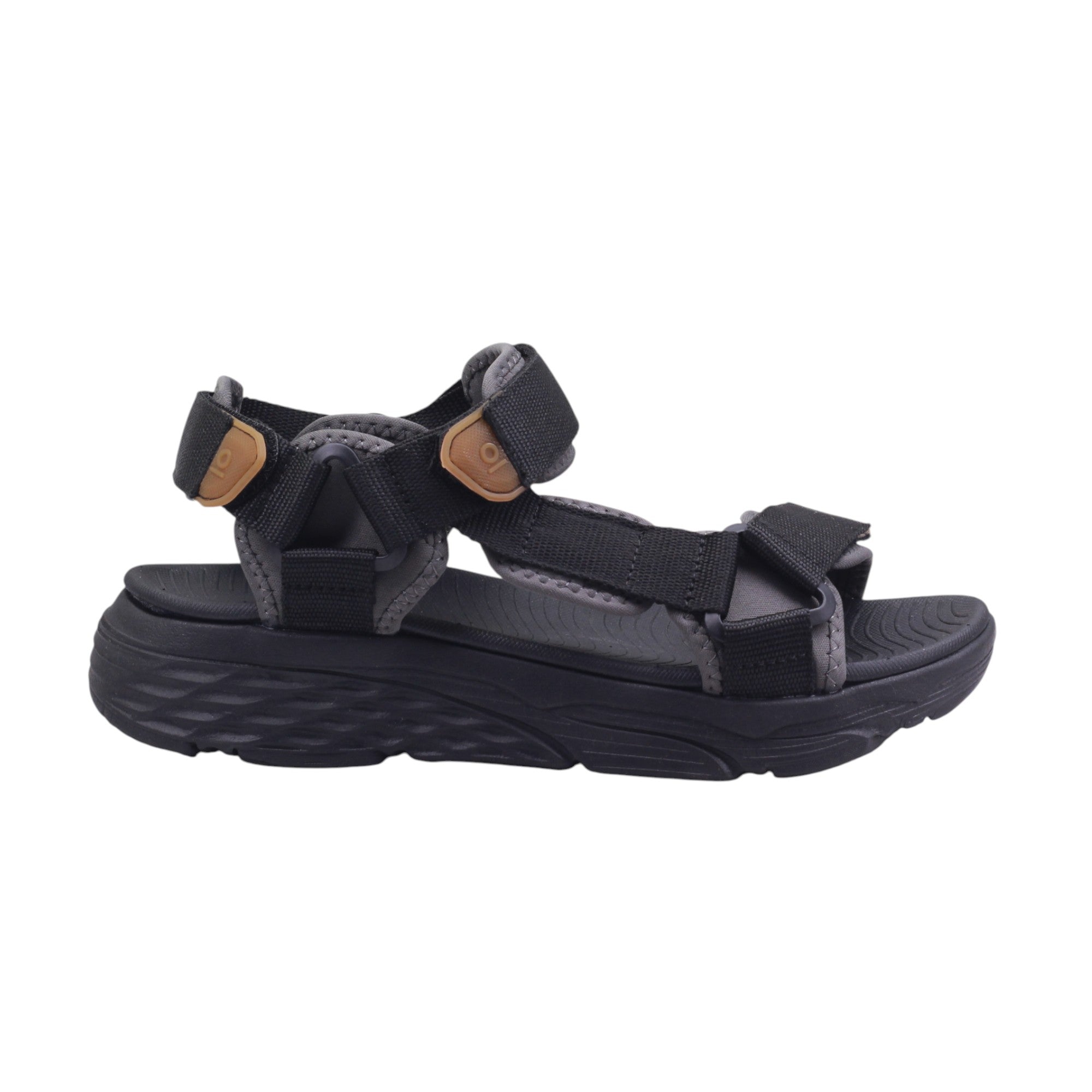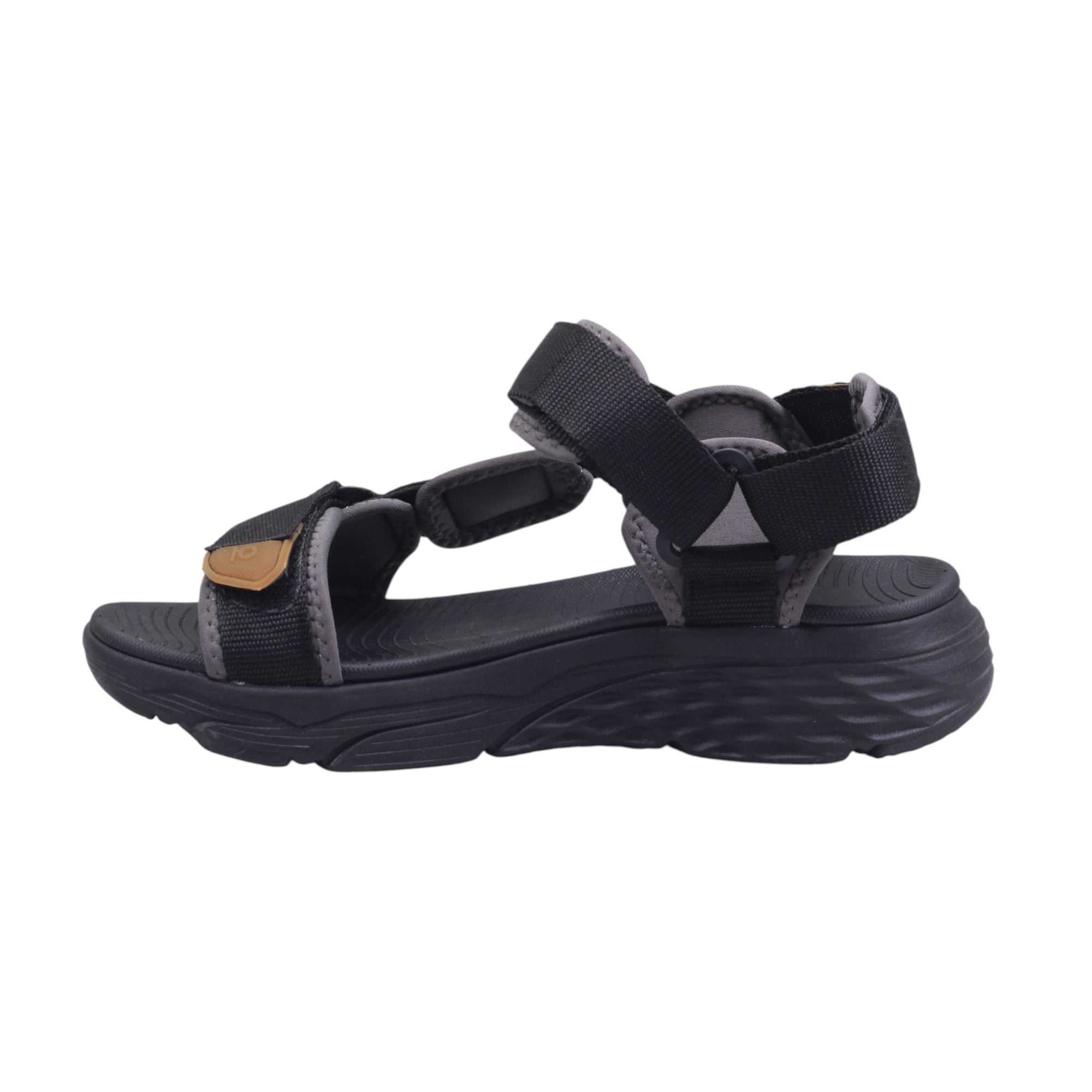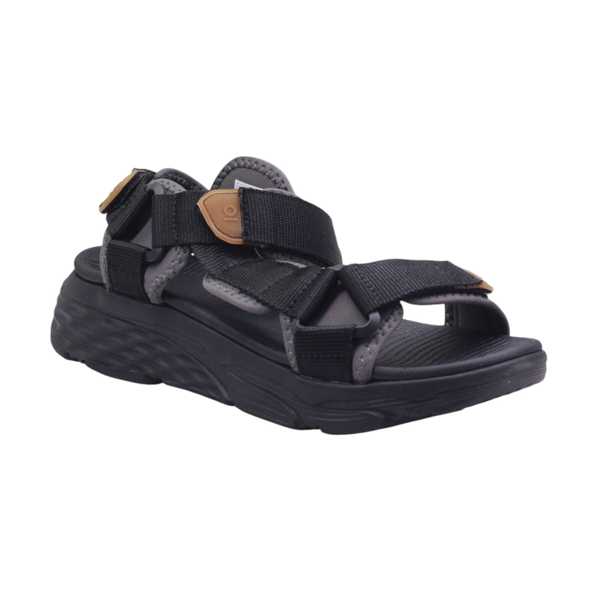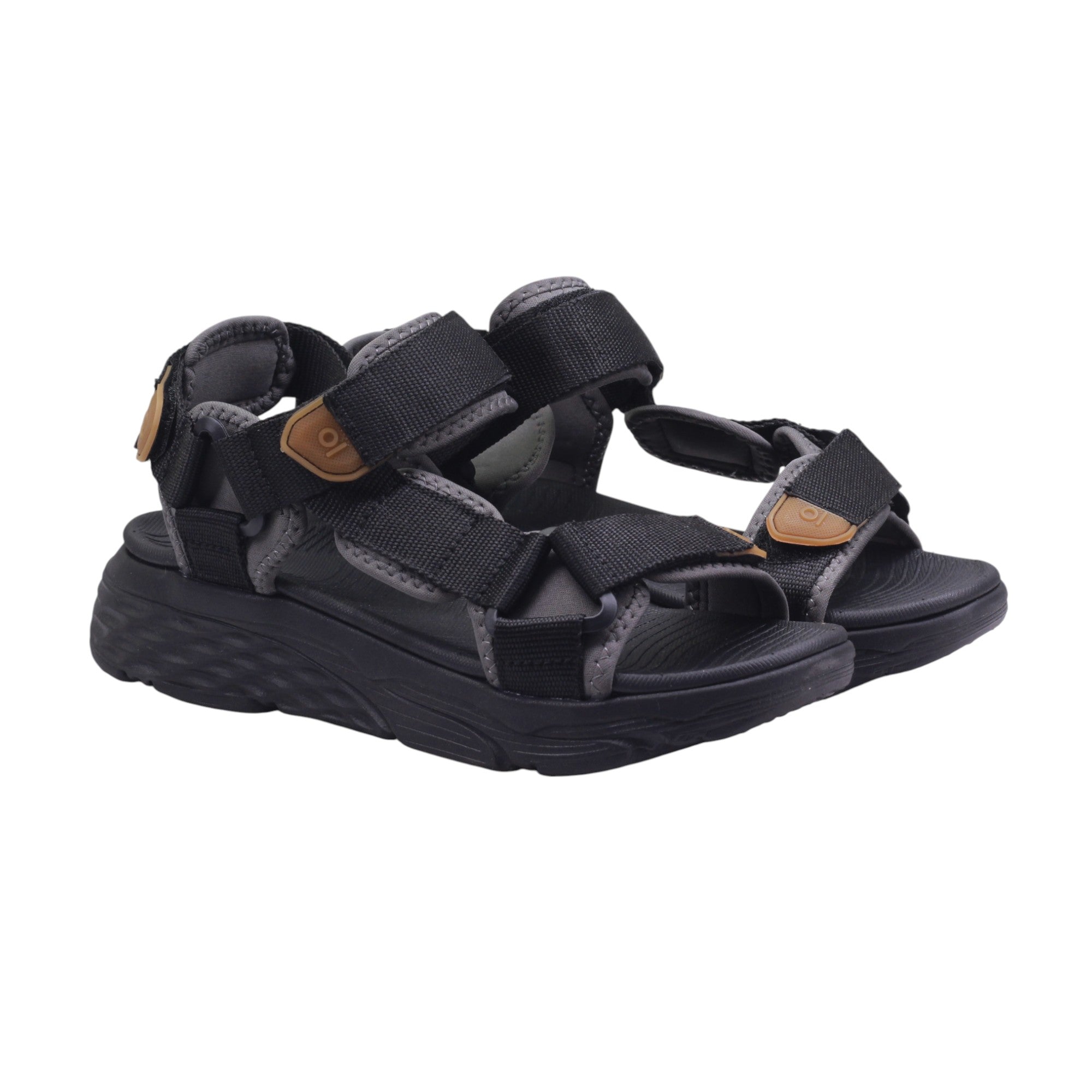 Sandalia para caballero marca Ozono en color negro. Diseño técnico con enfoque en confort y resistencia. Esta sandalia está elaborada en corte y forro textil, con materiales ligeros y transpirables que se adaptan al pie en movimiento. El sistema de ajuste se compone de tres tiras con velcro: una trasera que abraza el talón, una delantera sobre los dedos, y una superior en el empeine, permitiendo un calce personalizado y seguro en cada zona.