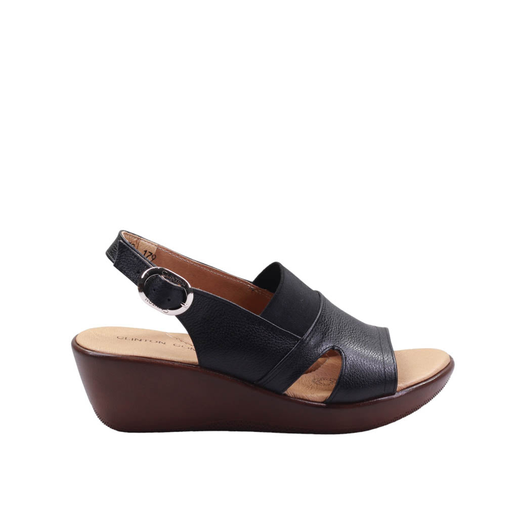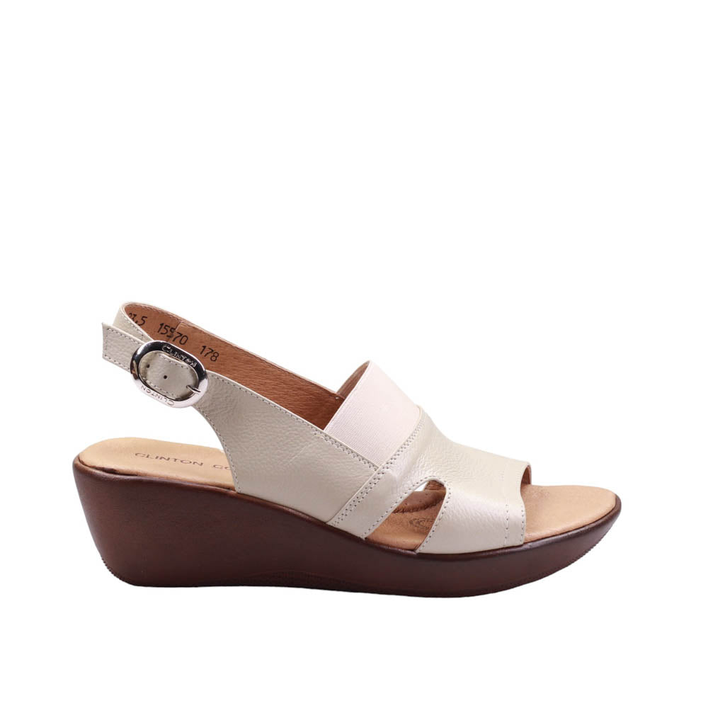 Plataforma para dama marca Clinton en colores hueso y negro. Cuenta con suela corrida de 5.00 cm la cual te da la comodidad que necesitas en un calzado, además tiene una plantilla de confort para más comodidad.