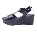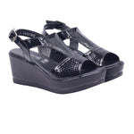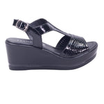 Calzado para dama marca Francis en color negro. Sandalia para dama con corte en piel de ternera y forro en piel coagulada, diseñada para brindar altura, estilo y confort. Su plataforma trasera de 6.0 cm y delantera de 2.5 cm ofrecen una elevación equilibrada que estiliza sin sacrificar estabilidad. El diseño tipo T-strap con ajuste de hebilla abraza el tobillo con firmeza, mientras que el acabado en charol negro aporta un toque elegante y moderno. Ideal como sandalia de plataforma alta, perfecta para eventos, oficina o salidas nocturnas. Un modelo que combina moda, comodidad y materiales premium.