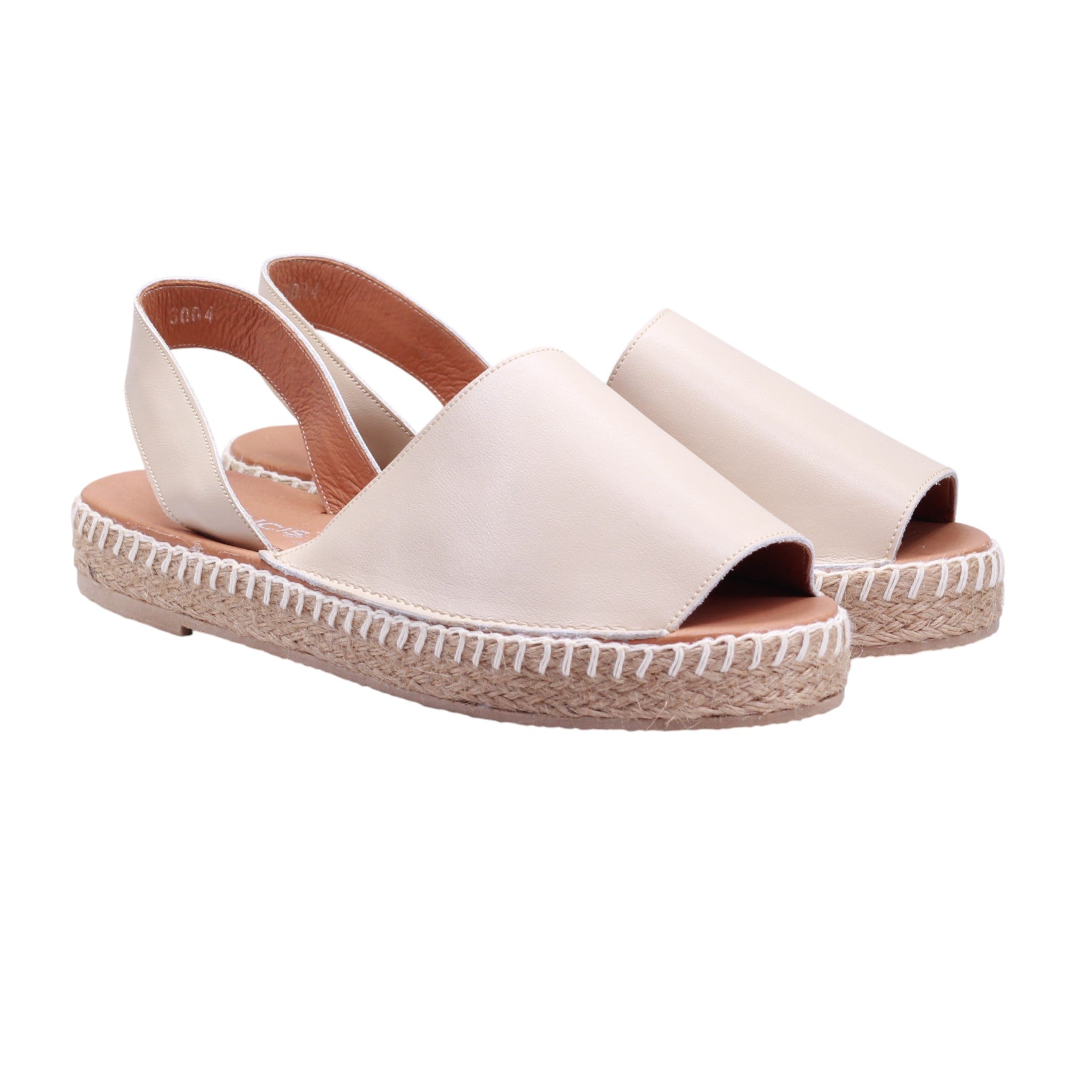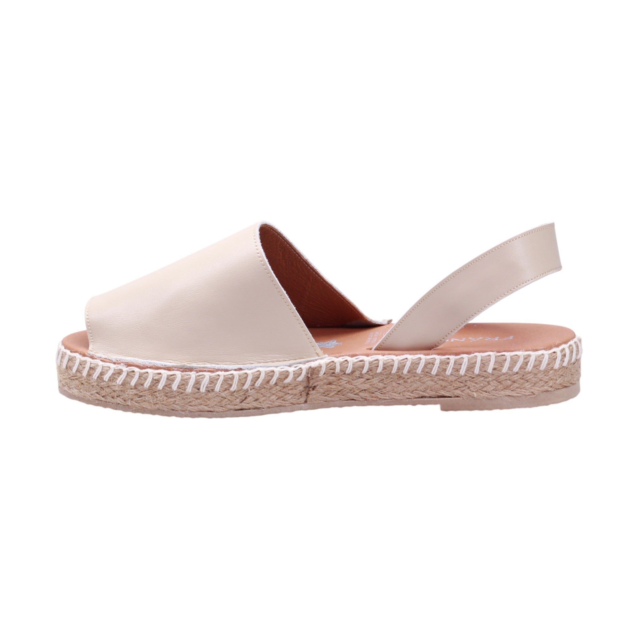 Alpargata de estilo casual refinado, ideal para climas cálidos y looks relajados con un toque sofisticado. Con corte y forro artificial, esta sandalia ofrece una estructura resistente y cómoda. Su diseño cerrado al frente y talón abierto tipo slingback proporciona frescura y soporte, mientras que la correa trasera asegura un ajuste firme. La plataforma tejida de 2.5 cm en yute natural, con costura blanca decorativa, aporta un aire artesanal y veraniego. La plantilla acolchada en tono neutro complementa el confort, haciendo de este modelo una opción versátil para el día a día o salidas informales con estilo.