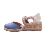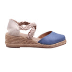 Alpargata cerrada con tiras cruzadas y plataforma tejida