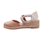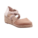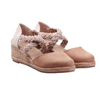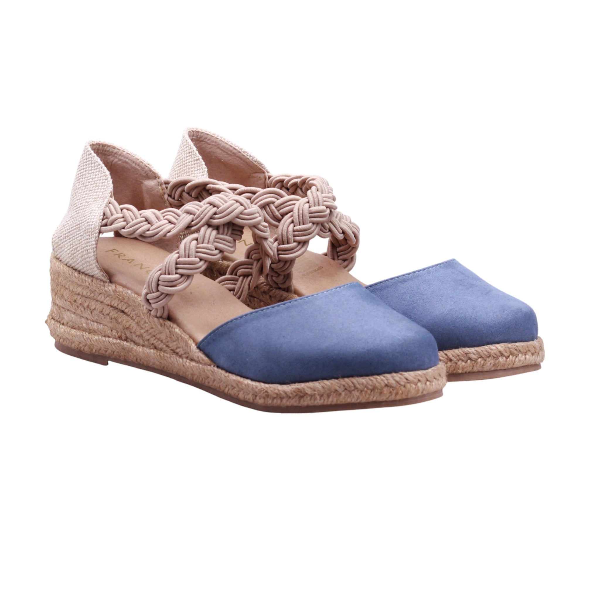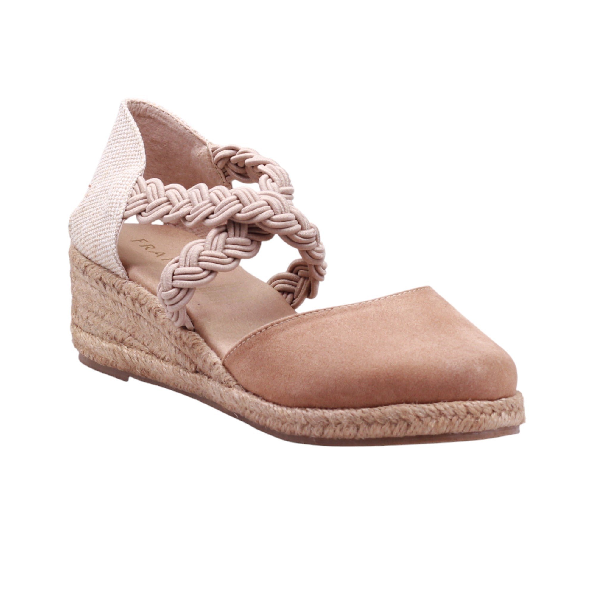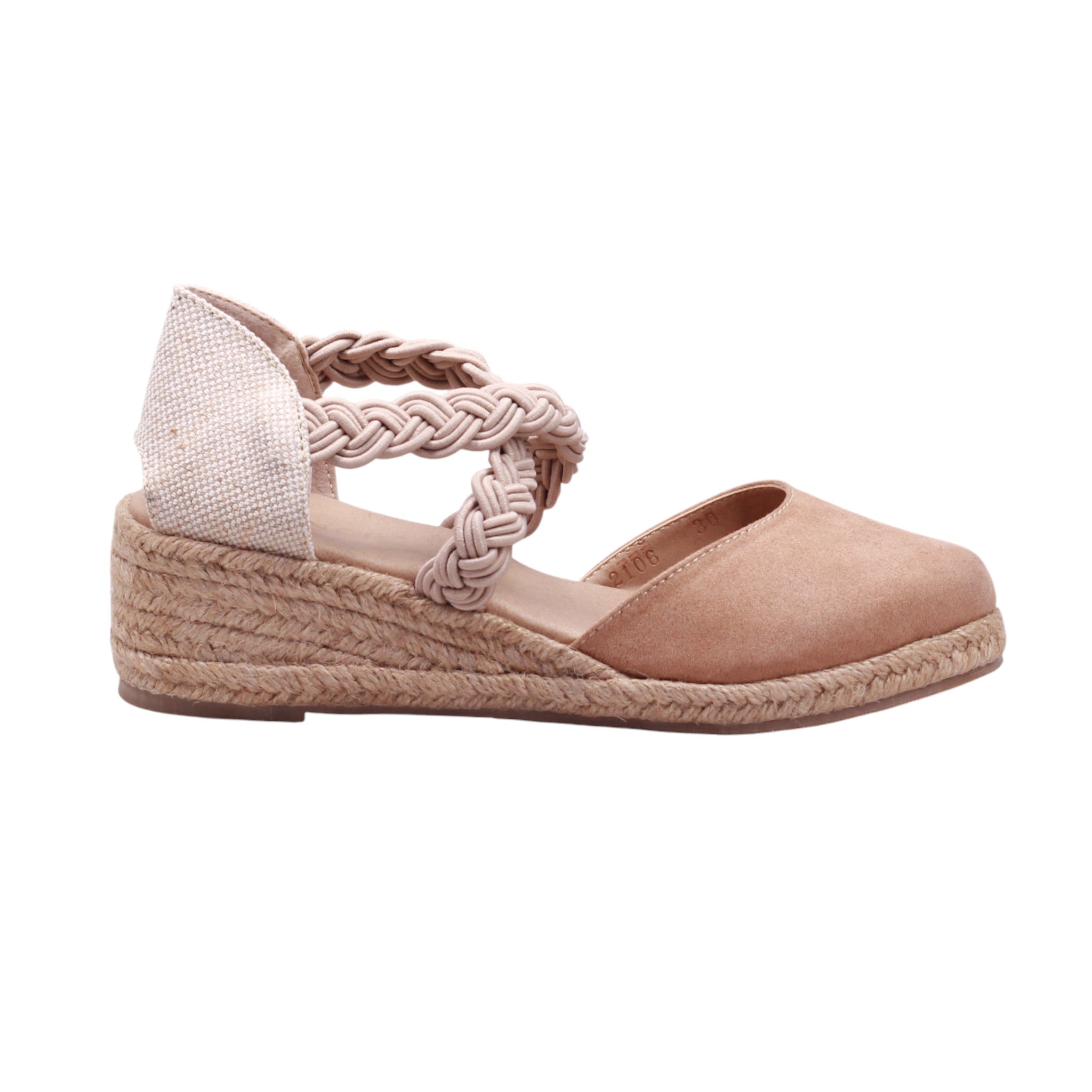 Sandalia tipo alpargata con diseño cerrado al frente y corte artificial, ideal para complementar looks frescos y casuales durante la temporada. Su forro artificial brinda suavidad interna y estructura cómoda. Las tiras trenzadas en cruce sobre el empeine y alrededor del tobillo aportan un toque artesanal y decorativo, además de ofrecer buen ajuste. La plataforma tejida en yute natural, con altura de 4.5 cm, eleva el estilo sin sacrificar confort. El talón está reforzado con textil texturizado para mayor soporte. Perfecta para combinar con vestidos ligeros, pantalones de lino o conjuntos relajados, esta sandalia fusiona estética veraniega con funcionalidad.