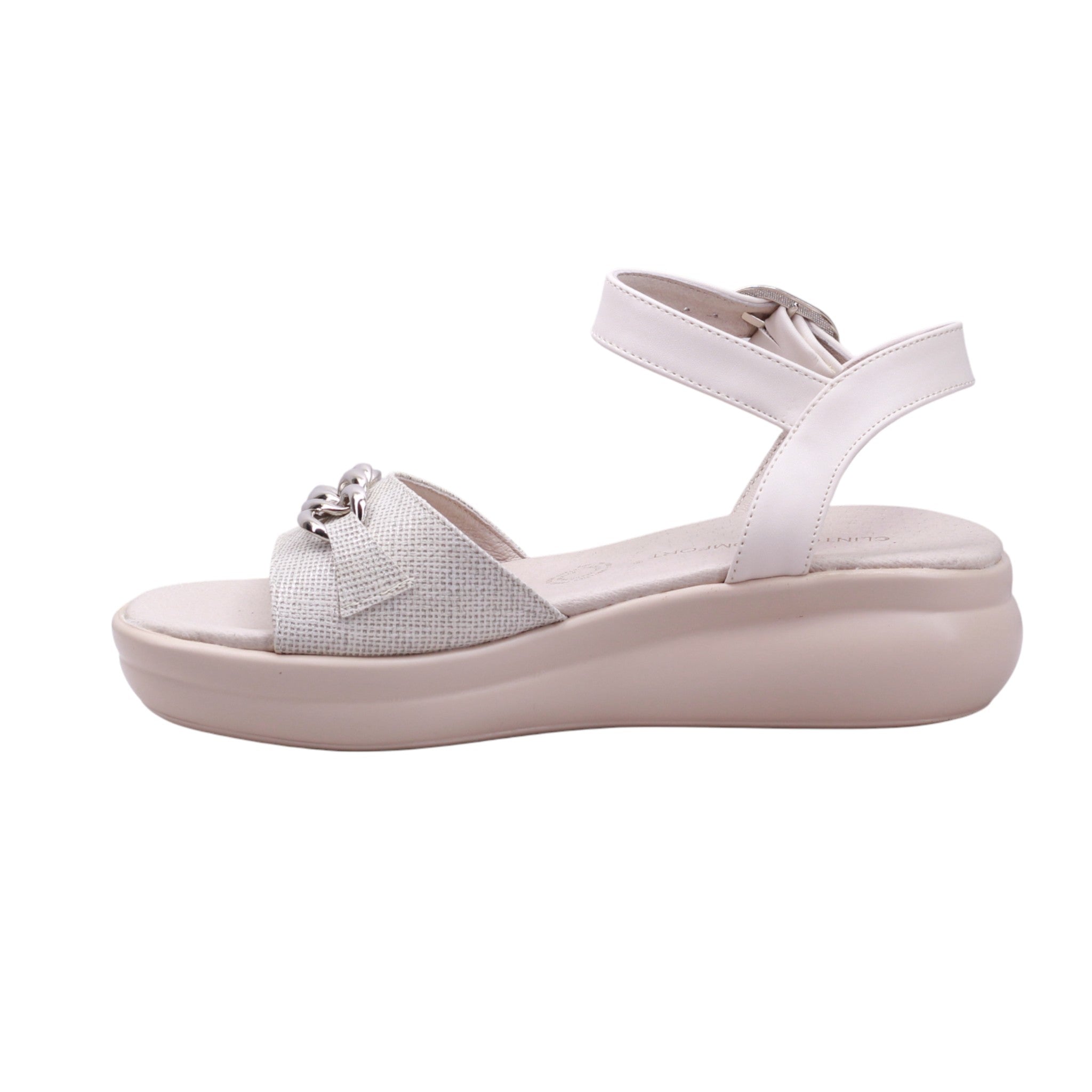 Sandalia con cadena decorativa y plataforma texturizada