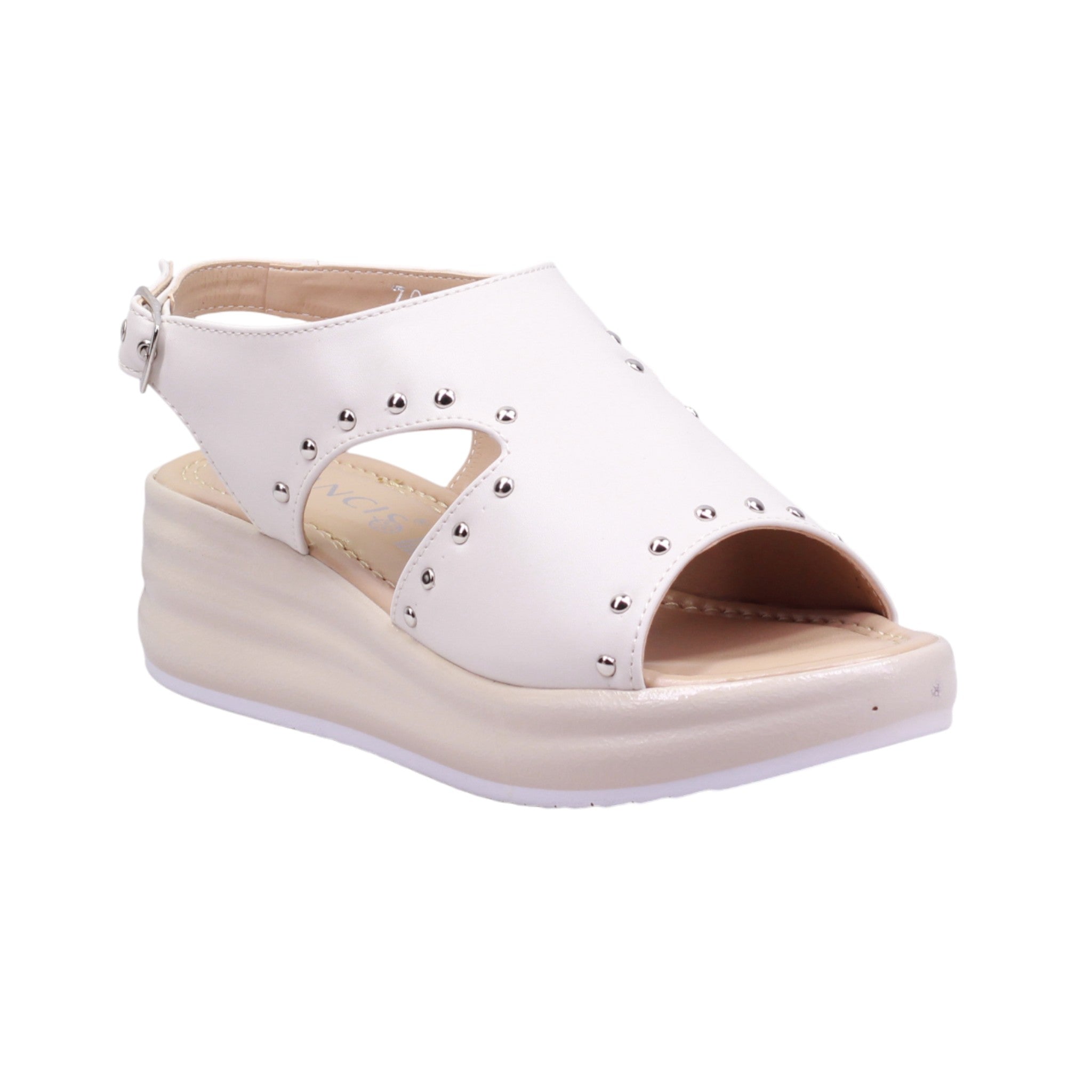 Sandalias cómodas, se ven muy bien. El color es como un beige muy sutil casi blanco, pero no es blanco.