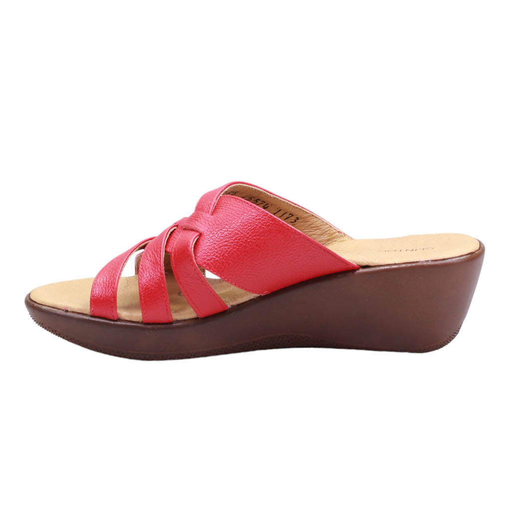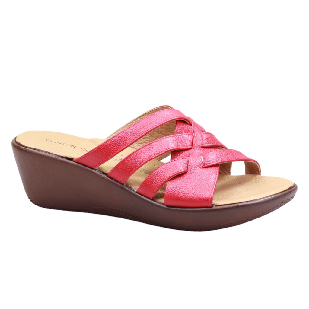 Sandalia con plataforma para dama marca Clinton en colores leño y rojo. Impulsa tu estilo con nuestro modele de plantilla de confort, nuestras triple tira delgada unidas a una tira ancha brindan soporte adicional, mientras que la plataforma de 5.00 cm te da un toque de altura. ¡Luce elegante y cómoda todo el día!